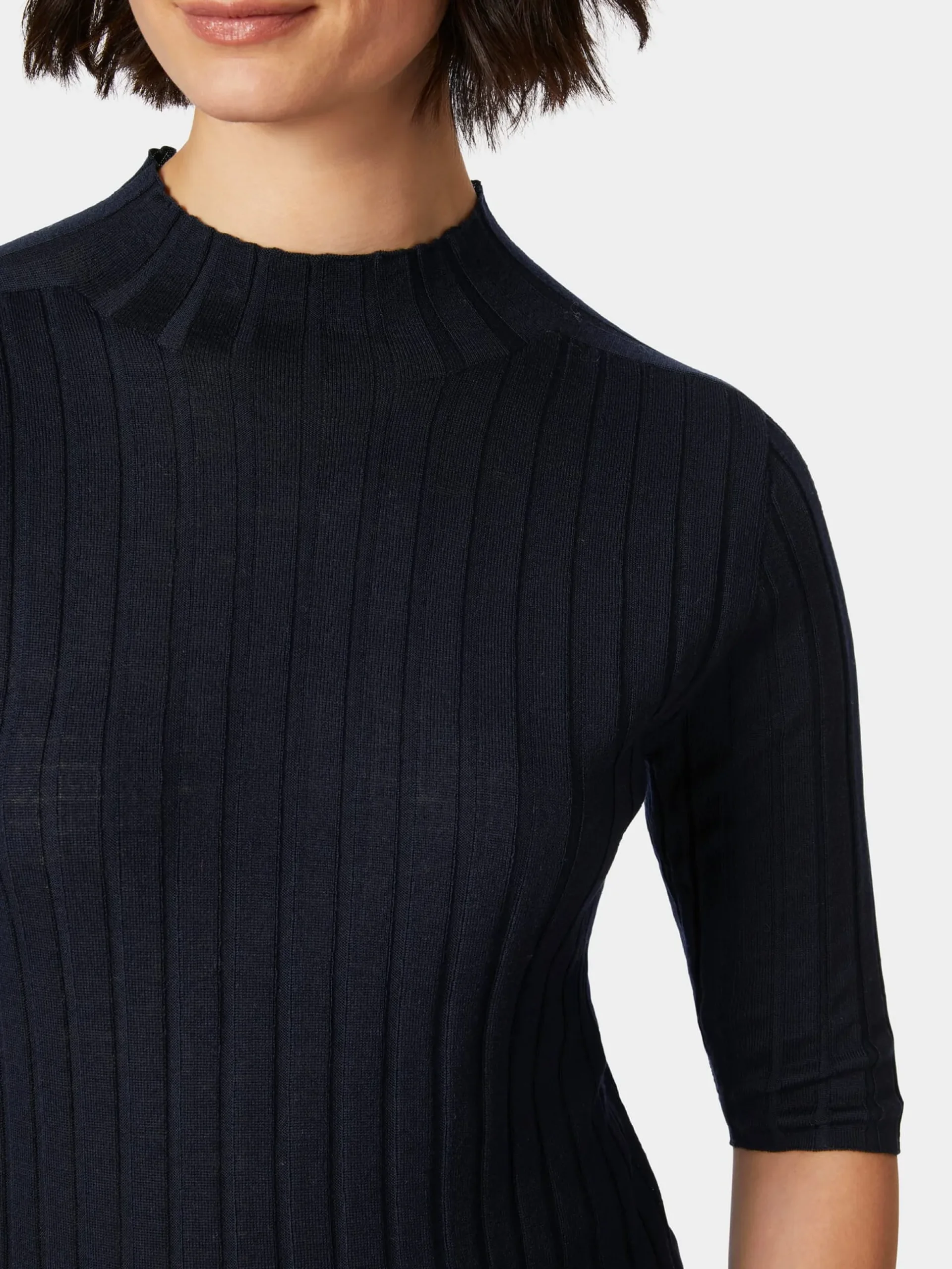 Anschmiegsamer Rippenstrick. Aus kbT-Schurwolle