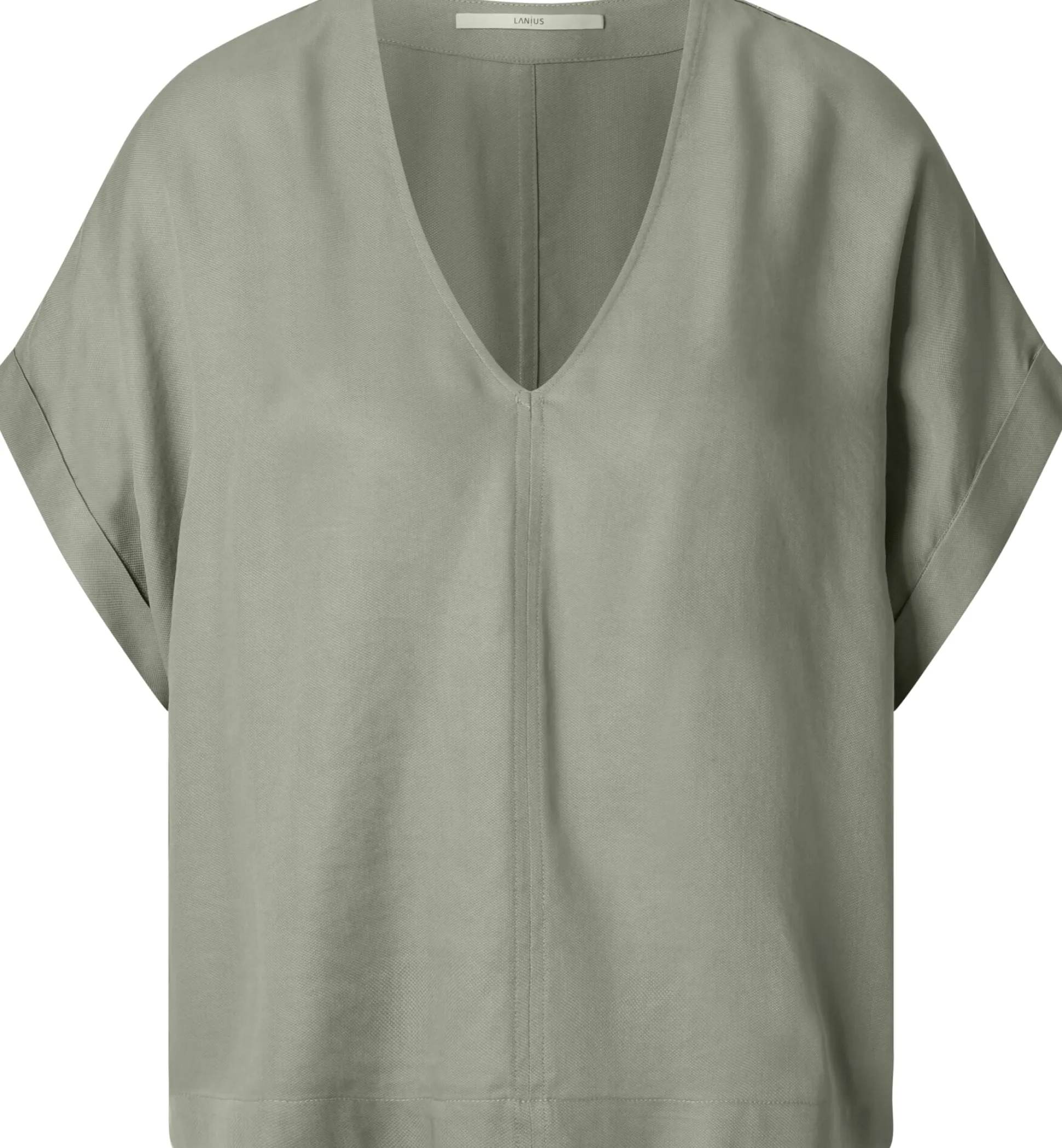 Mit seiner zart glänzenden Oberfläche mit leicht changierender Optik und seiner weichen Haptik wirkt der Stoff dieser Bluse fast wie Seide. Er besteht jedoch aus reinem Lyocell (TENCEL™), einer regenerativen Zellulosefaser, die aus Holz gewonnen wird, das aus kontrollierten Quellen stammt. Das hautsympathische und atmungsaktive Gewebe liegt angenehm glatt und schmiegsam auf der Haut und hat einen schönen, weich fließenden Fall. Gearbeitet ist die Bluse in lockerer, figurumspielender Passform mit überschnittenen Schultern, tiefem V-Ausschnitt und kurzen Ärmeln mit Aufschlag. Längsteilungsnähte vorn und hinten verschlanken die Silhouette.