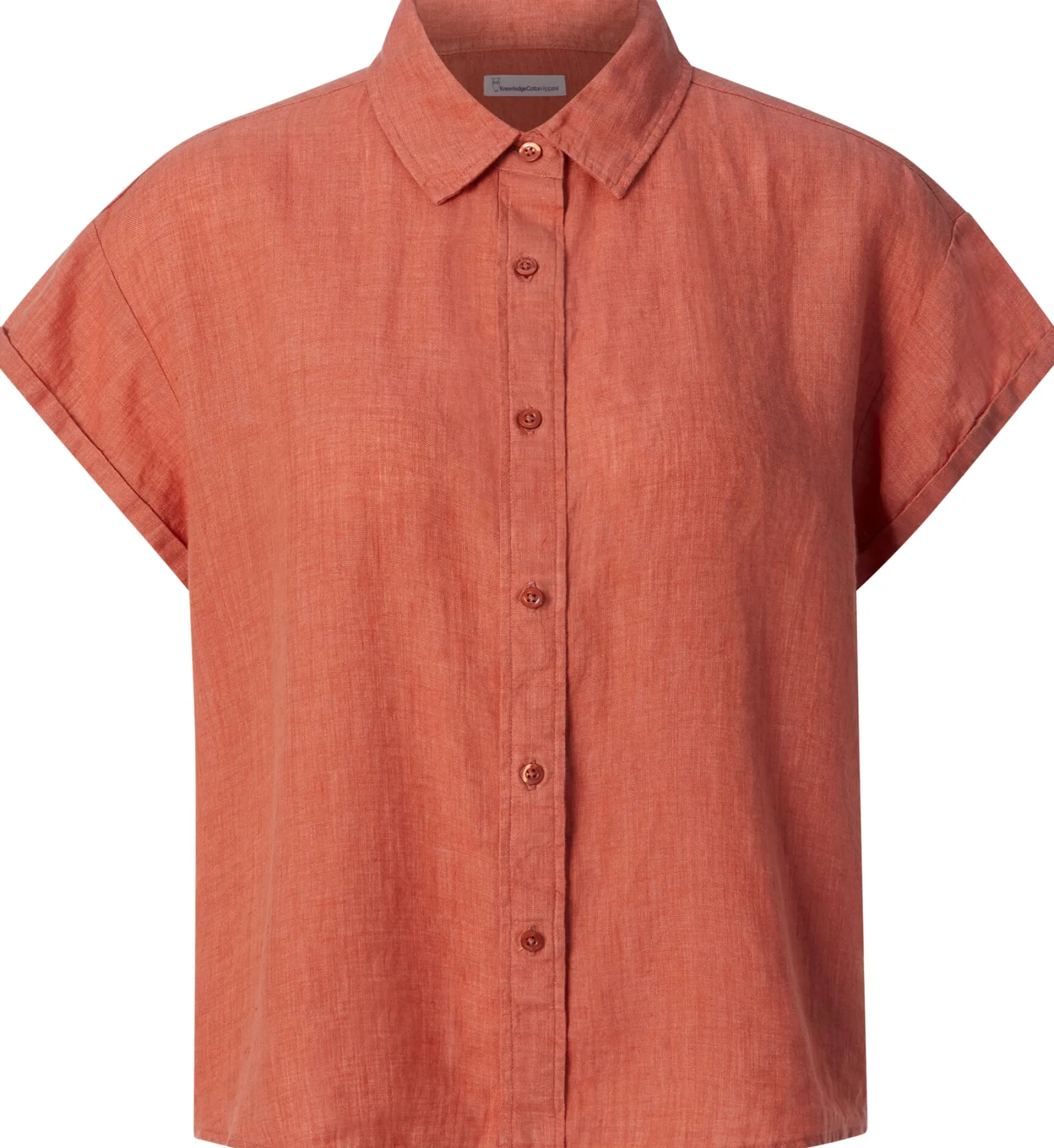 Leinen ist dank seiner kühlenden Trageeigenschaften das Material der Wahl für die warme Jahreszeit. Bei dieser gerade geschnittenen Bluse verwendet Knowledge Cotton Apparel Leinen aus kontrolliert biologischem Anbau. Gearbeitet ist sie mit überschnittenen Schultern, sehr kurzen Ärmeln mit Aufschlag und rundem Saum. Das Gewebe ist leicht und luftig und zeigt den materialtypischen Edelknitter.