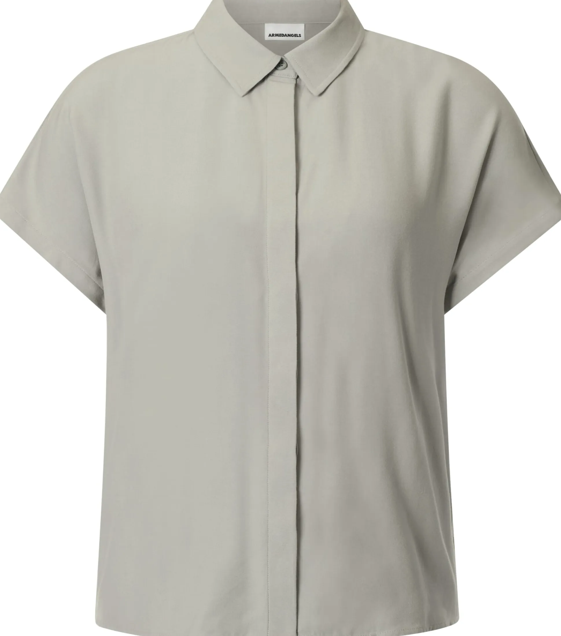 Diese Bluse ist dank des verwendeten Materials perfekt auf die warme Jahreszeit abgestimmt. Armedangels fertigt sie aus reiner LENZING™ ECOVERO™-Viskose, einer Regeneratfaser, die aus Holz und Zellstoff aus zertifizierten Quellen gewonnen wird. Das hautsympathische Gewebe hat eine schmiegsame Haptik und einen fließenden Fall, so wird die Figur weich umspielt. Zudem ist der Stoff besonders atmungsaktiv, da Viskose viel Feuchtigkeit aufnehmen und schnell wieder nach außen abgibt. Gearbeitet ist die Bluse mit Hemdkragen, verdeckter Knopfleiste und kurzen Ärmeln.