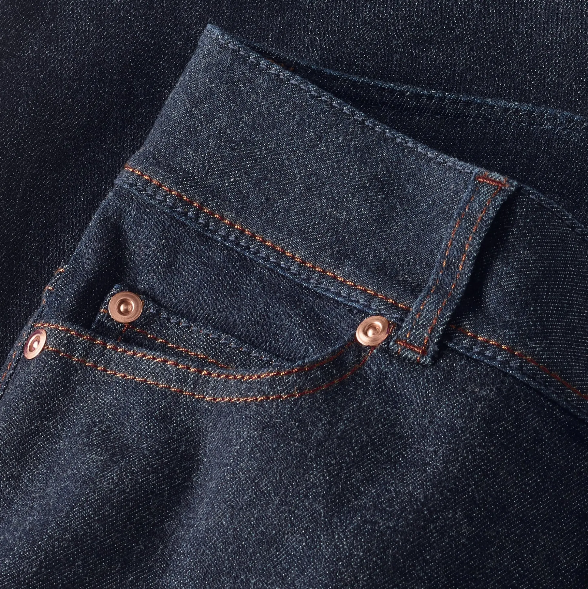 98% Baumwolle, 2% Elastan. Nietknopf aus Kupfer mit einem Gegenknopf aus rostfreiem Stahl, Reißverschluss Messing (nickelfrei). Hergestellt in Italien. Denim 10,5 oz.
