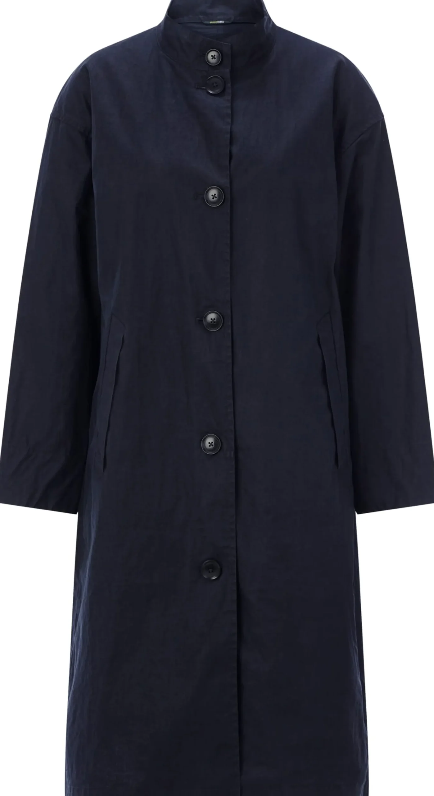 Den Oberstoff dieses bequemen Mantels fertigt LangerChen aus reinem, kontrolliert biologisch angebautem Leinen. Das hautsympathische Gewebe ist leicht und atmungsaktiv und zeigt die materialtypischen Fadenverdickungen. Noch dazu ist es dank der PFC-freien Polyurethan-Beschichtung auf der Innenseite winddicht und wasserabweisend. So ist der Mantel ein idealer Begleiter für die Übergangszeit, der mit seiner legeren Passform mit überschnittenen Schultern viel Bewegungsfreiheit bietet. Lüftungsösen unter den Achseln erhöhen den Tragekomfort noch. Ausgestattet ist der ungefütterte Mantel mit Stehkragen, durchgehender Knopfleiste und knöpfbaren Ärmelabschlüssen. Eine Längsteilungsnaht im Rücken verschlankt die Silhouette optisch. Zwei schräg eingesetzte Schubtaschen und eine Innentasche mit Reißverschluss nehmen Kleinteile des täglichen Bedarfs auf.