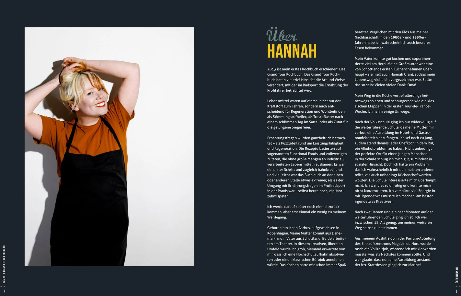 Schmackhafte, gesunde Zutaten, viel Abwechslung, eine einfache und somit stets frische Zubereitung vor Ort – das sind die Eckpfeiler von Hannah Grants Grand-Tour-Küche, die auch Hobbysportlern bestmögliche Leistung und Regeneration, mehr Energie für große Ziele und neue Freude am guten Essen beschert.