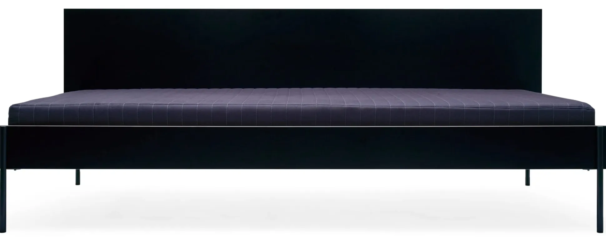 Wie das Bett steht es auf feinen Stahlfüßen, die sich aus den stählernen Kopf- und Fußteilen entwickeln. Diese werden mit den beiden Bettseiten aus beschichtetem Birkensperrholz verbunden und zu einer tragenden Einheit gebracht. Kopf- und Fußseite sowie die beiden Längsseiten werden durch eine Schlitzverbindung beschlagfrei zusammengesteckt. An einer Längsseite besitzt das Daybed HANS ein hohes Seitenteil.