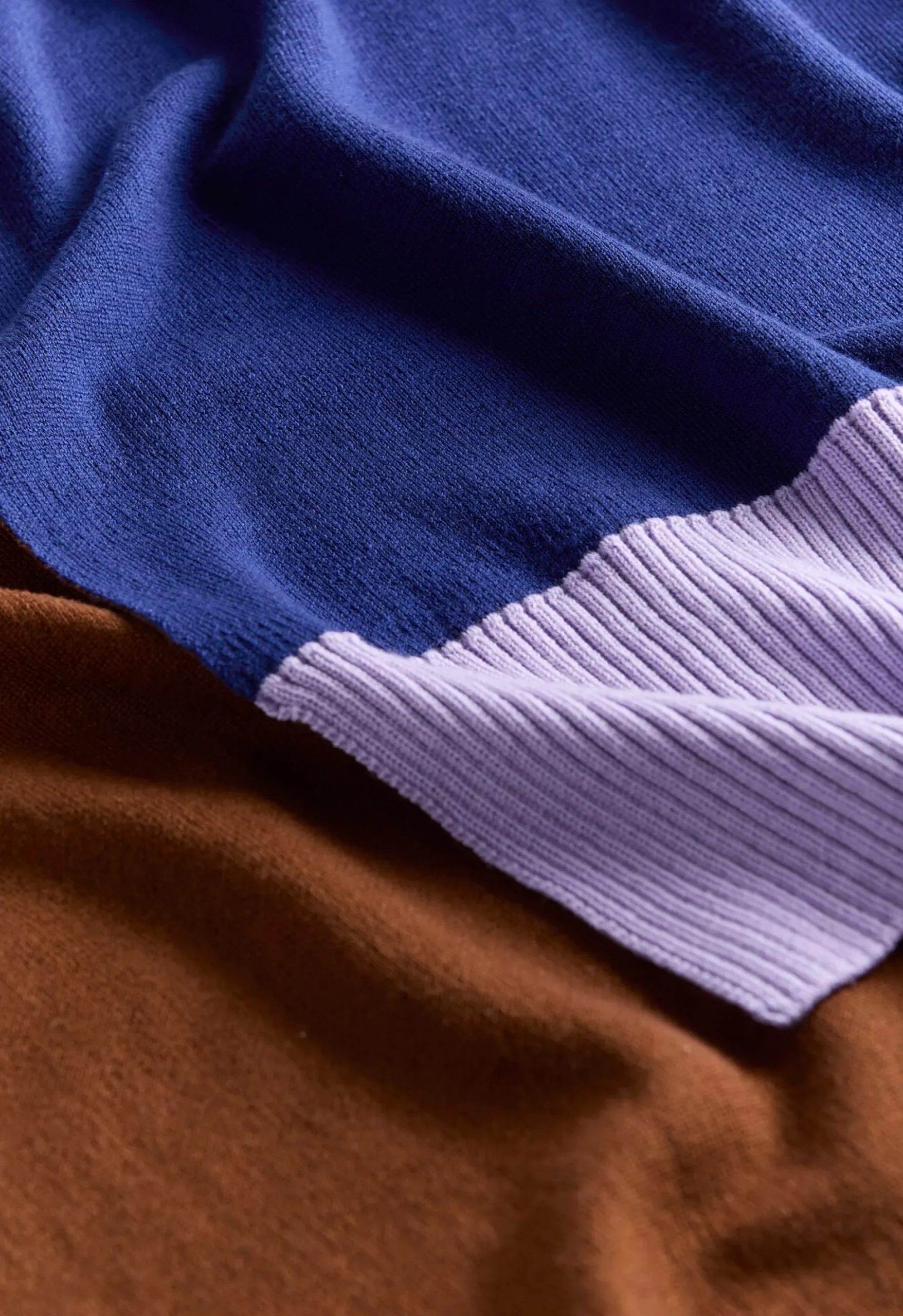 Doppelseitig gestrickte Decke aus 100% Merinowolle in kräftigen Blockfarben – auffällig mit ihren unterschiedlichen Farben auf beiden Seiten, die gekonnt aufeinander abgestimmt sind. Schönes Detail: Das breite Rippbündchen in kontrastierender Farbe ist beiden Seiten gemein. Ideal für einen entspannten Abend zu Hause oder als farbstarkes Detail am Fußende des Bettes.