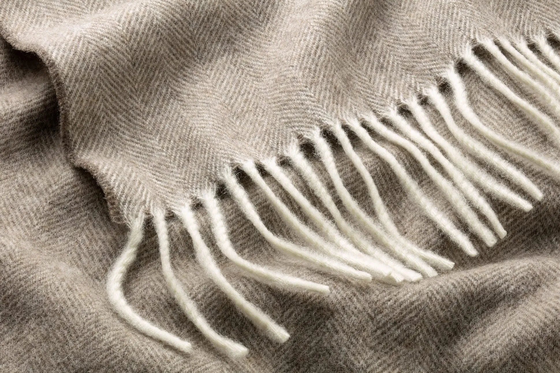 Steinbeck im schwäbischen Memmingen gehört mit einer firmeneigenen Streichgarnspinnerei, Färberei, Weberei und Veredelung zu den wenigen deutschen vollstufig produzierenden Textilunternehmen – vom Waschen über das Spinnen, Färben und Weben bis hin zum Konfektionieren finden alle Produktionsschritte in Deutschland statt. Besonderes Augenmerk gilt dabei immer auch der Auswahl der Rohware, die vorrangig aus deutschen, meist kleinen Schäfereien stammt. Auch die Wolle für diese Decken stammt von heimischen Lämmern. Sie wird bei der allerersten Schur der Tiere gewonnen und ist hier mit einer Faserfeinheit von 21 Mikron besonders weich und fein. Die Decken sind in klassischem Fischgratköper gewebt, mit einem ungefärbten, hellen Garn in der Kette – die Fransen sind daher bei allen Decken hell – und mit gefärbten, dunkleren Garnen im Schuss. Auf mit Naturdisteln bestückten Raumaschinen wird das Gewebe schließlich leicht angeraut, wodurch die Decken einen weichen Griff erhalten.