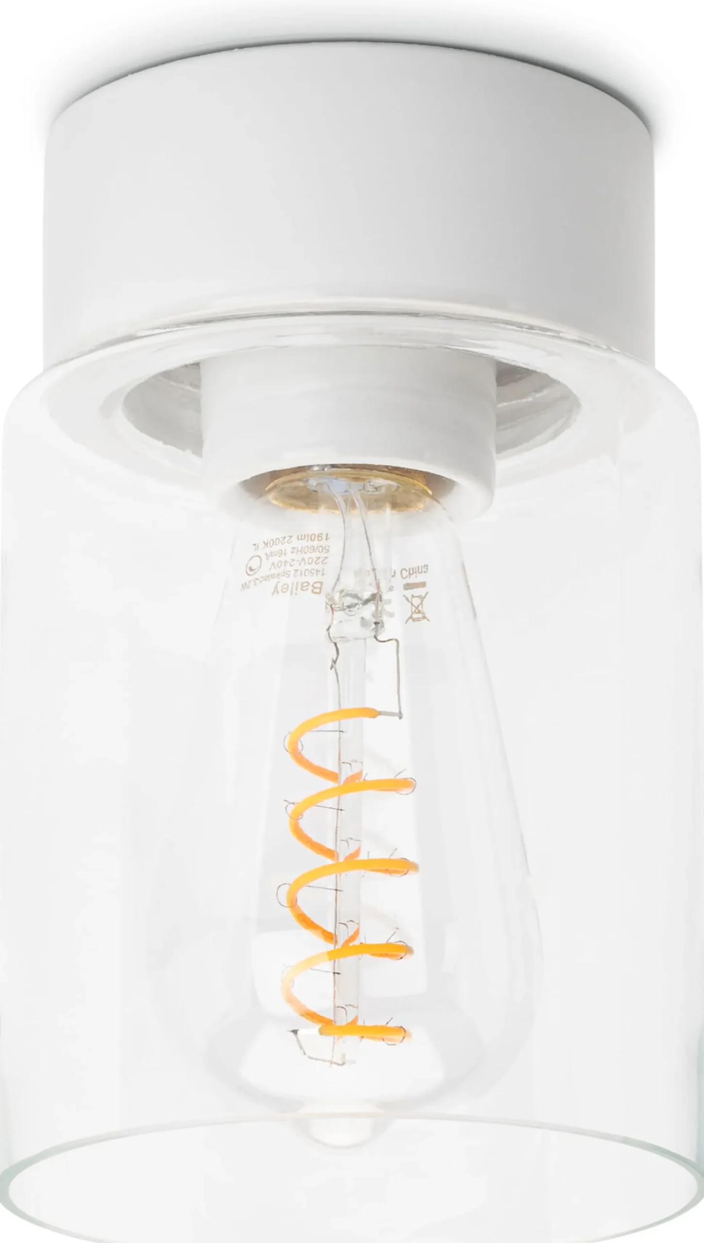 Porzellansockel, Ø 10 cm, Höhe 4,3 cm. Glaszylinder, Ø 11,3 cm, Höhe 13,4 cm. Gesamthöhe 17,7 cm. Silikondichtungen. Keramikfassung E27 (max. 75 W). IP21. Hergestellt in Schweden. Gewicht 0,8 kg. Lieferung ohne Leuchtmittel und Montagematerial.