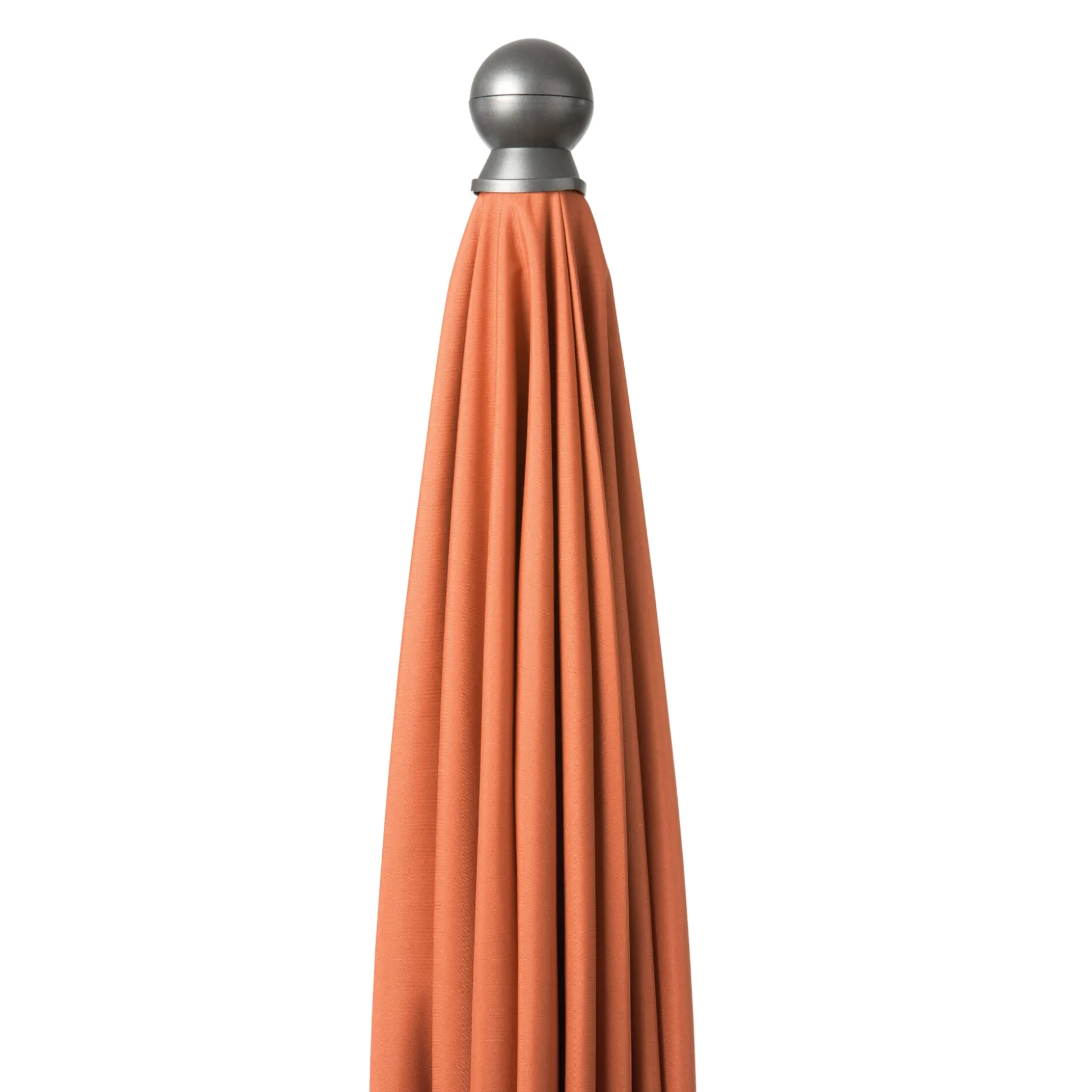 Doppler fertigt diesen Sonnenschirm in Österreich aus 1 mm starken Edelstahlrohren, mit Schirmstreben aus biegesteifen, U-förmigen Paragonschienen. Die stufenlose Höhenverstellung um ca. 60 cm erfolgt wie bei guten Teleskopstangen mit einem Drehknauf, der Unter- und Oberrohr auf der gewünschten Höhe gegeneinander fixiert. Über ein Knickgelenk aus verzinktem Stahl im Oberrohr lässt sich der Schirmkopf um einen Winkel von 35° neigen. Die Bespannung besteht aus einem wetterfesten, durchgefärbten Polyester-Gewebe von 180 g/qm; dieses ist lichtecht (Kennzahl 6) und bietet, dank einer speziellen Beschichtung, ausgezeichneten UV-Schutz (UV-Schutzfaktor 80, vergleichbar mit dem entsprechenden Lichtschutzfaktor bei kosmetischen Sonnenschutzmitteln). Wasserdicht ist das Gewebe auch – außer bei ausgiebigem Dauerregen, dann werden die Nähte durchlässig. Aufgrund seines geringen Gewichts und der problemlosen Handhabung eignet sich der Doppler-Schirm besonders für den mobilen Einsatz auf dem Balkon und der Terrasse.
