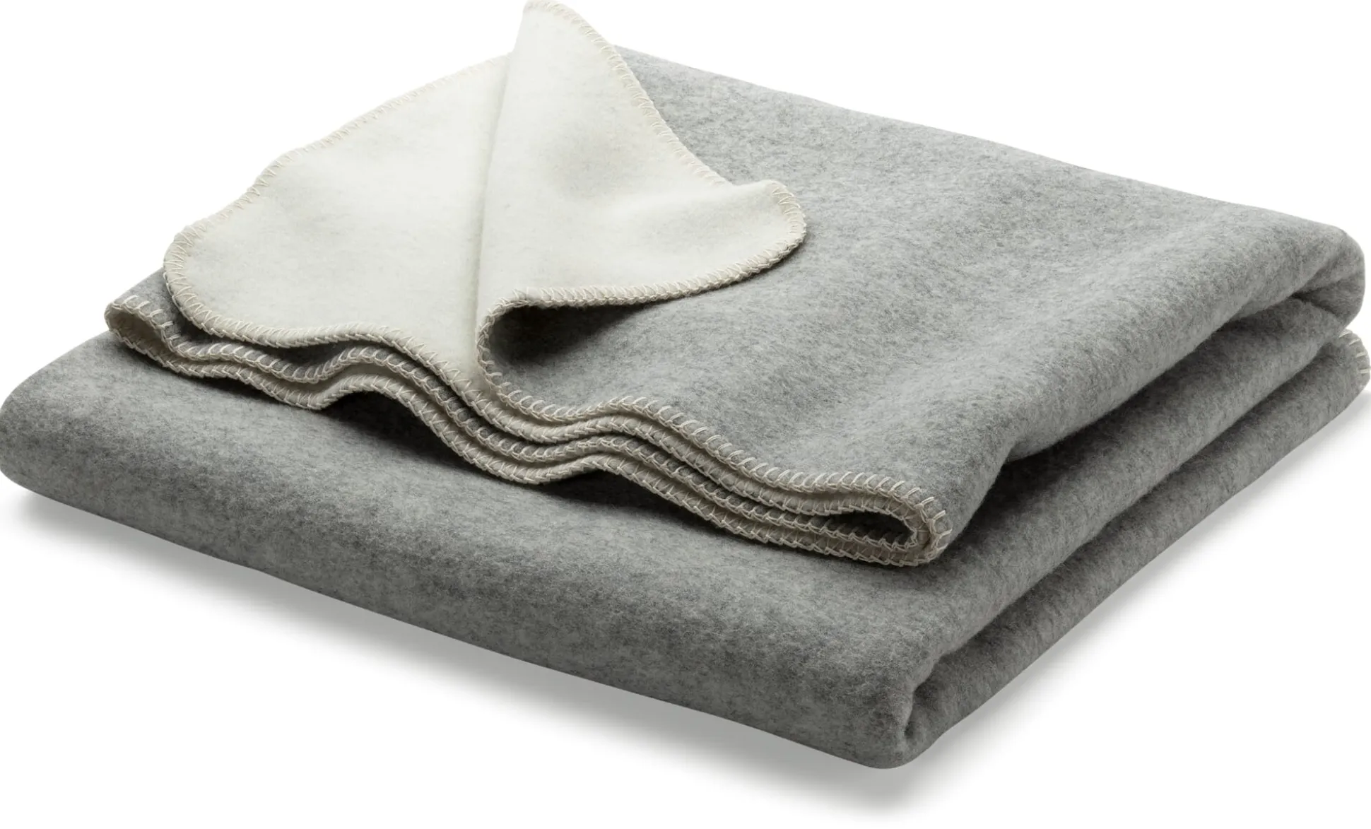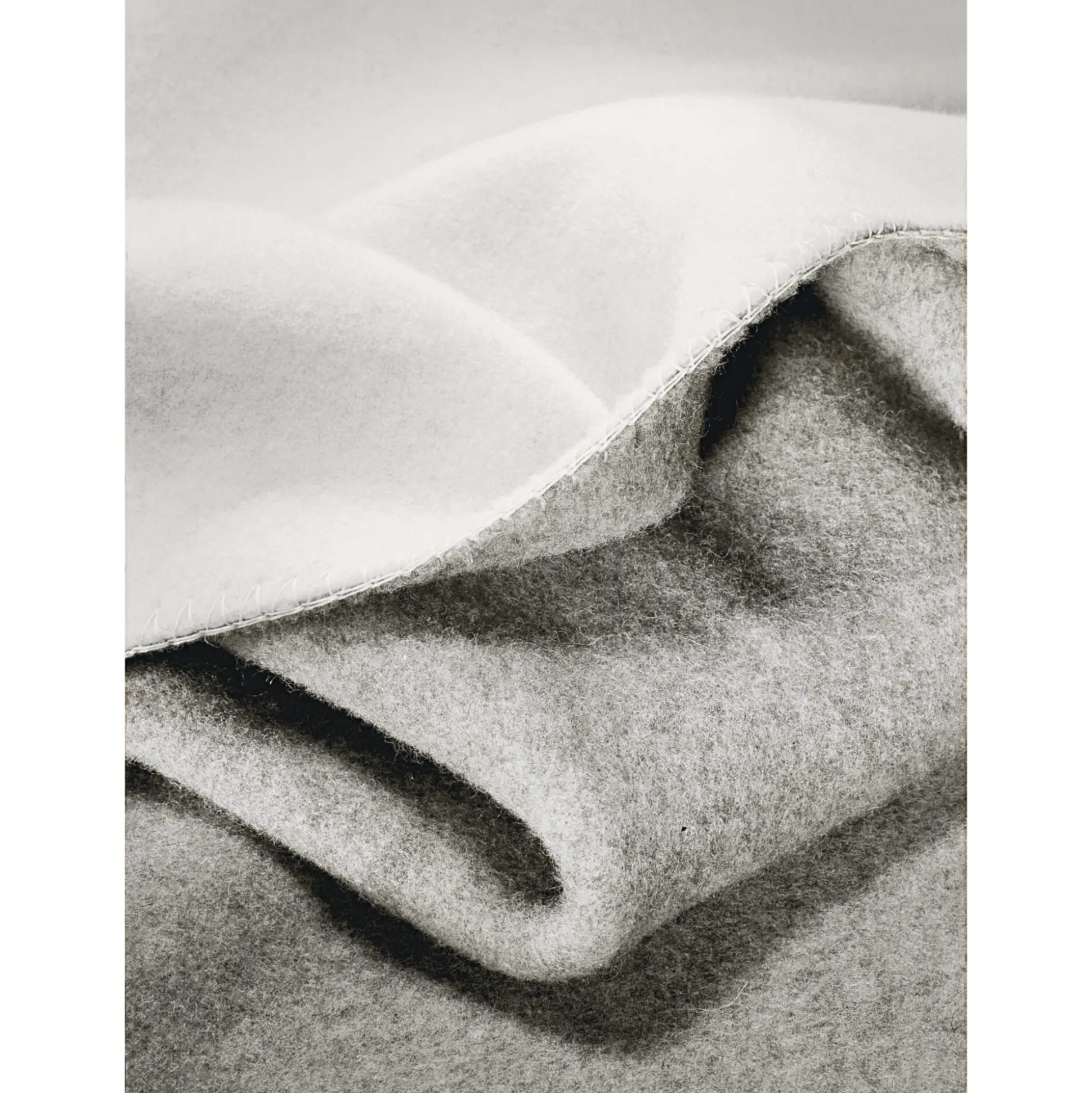 Diese Doubleface-Decken entstehen vollständig in Deutschland – vom Spinnen über das Weben und Färben bis hin zum Waschen, Rauen und Ketteln –, auch die Schurwolle stammt von deutschen Schafen. Um größeres Volumen und noch mehr Weichheit zu erzeugen, wird der Doubleface gewaschen und die Gewebeoberfläche zusätzlich angeraut: auf mit Naturdisteln bestückten Rollkarden-Raumaschinen. Die Kanten und die abgerundeten Ecken sind sorgfältig mit einem festen Kettelstich versehen. Die Decke hat einen so weichen Fall, dass sie auch schon mal ein Oberbett ersetzen kann. Passend zu den beiden Decken in Anthrazit und Grautönen lassen wir aus dem gleichen Material einen temperaturausgleichenden Flaschenbezug fertigen.