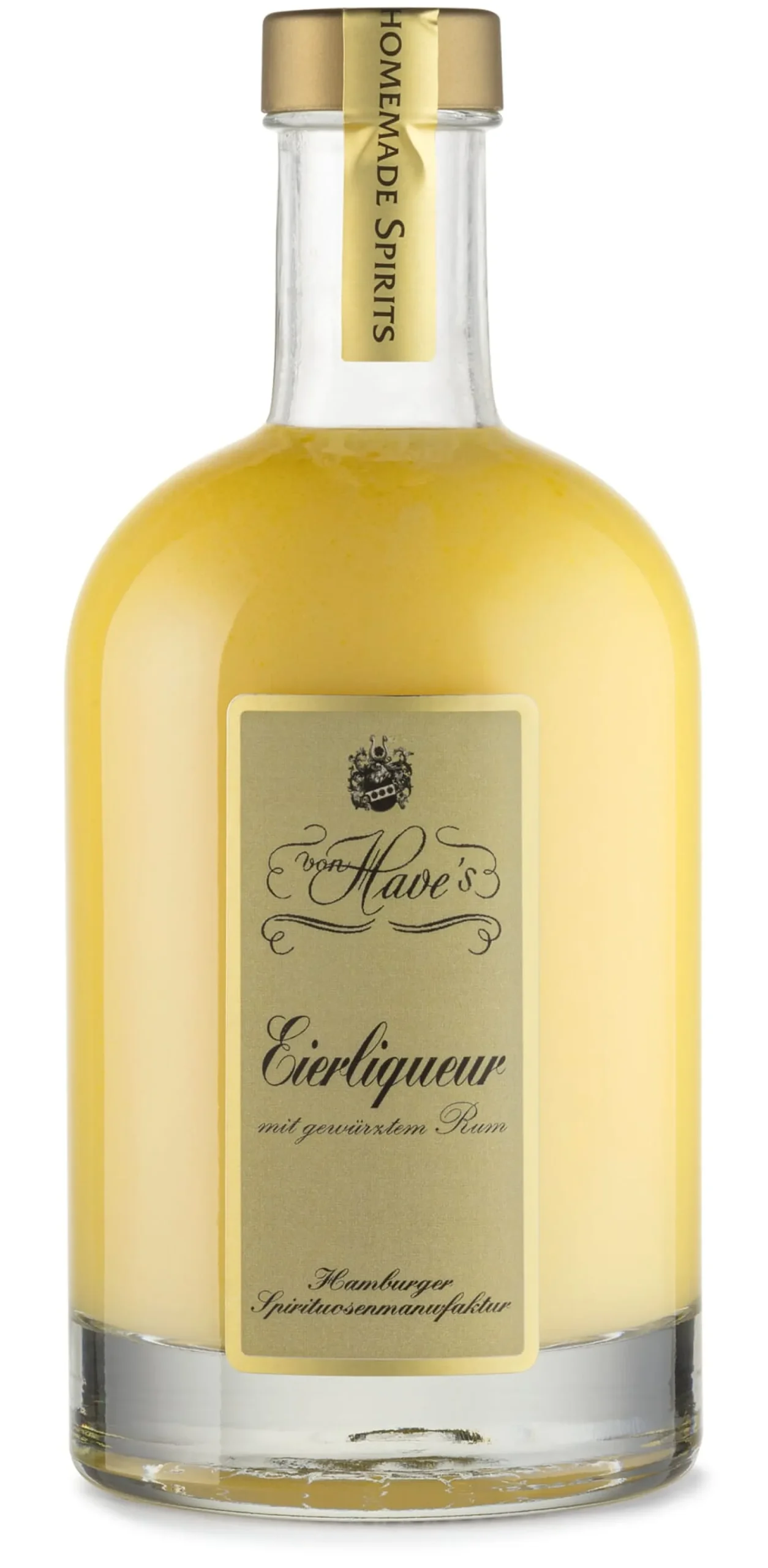 Rum war – neben Rohrzucker und Avocados – die Basis jenes südamerikanischen Getränks, aus dem in Europa der Eierlikör wurde. So ist es nur folgerichtig, dass Heinr. von Have in bester hanseatischer Tradition und als Hommage an die Handelsmetropole Hamburg für diesen außergewöhnlichen Eierliqueur wieder darauf zurückgreift. Es ist ein alter fassgereifter Jamaika-Rum mit üppigen Aromen, der bestens mit den erlesenen Gewürzen – darunter Piment, Ingwer, Zimt und Nelke – harmoniert. Eine Nuance Kaffee rundet den vielschichtigen Eierliqueur ab.