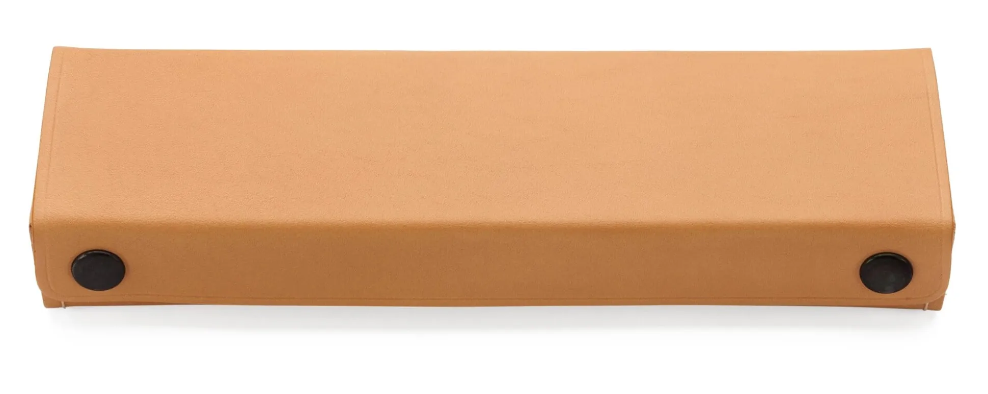 Ein kompaktes, formstabiles – und auch haptisch ausgesprochen angenehmes – Etui aus kräftigem Rindleder mit einer Stärke von 2 mm. Auf Reisen oder zu Hause ist es ein sicherer Aufbewahrungsort für empfindlichere Dinge wie Schmuck, Rasierutensilien, Kosmetikpinsel oder Kämme. Es eignet sich gleichermaßen für die kleine Reiseapotheke, Pipetten oder Pinzetten und hält, auch wenn es nicht unterwegs ist, Nähzeug, Stricknadeln oder Schreibgeräte und Pinsel vor. Das schlichte Etui ist in bester Sattlermanier mit Kantennaht gefertigt. Damit es dauerhaft seine Form und Stabilität behält, wird das ausgestanzte Leder nass in die endgültige Form gebracht, in der es dann von Hartholzklötzen gehalten wird, bis es getrocknet ist. Das Leder ist anfangs recht hell, dunkelt jedoch schnell nach und entwickelt im Laufe der Zeit die für Leder typische Patina. Am Etuirücken ist es mit der Manufactum Prägung versehen.