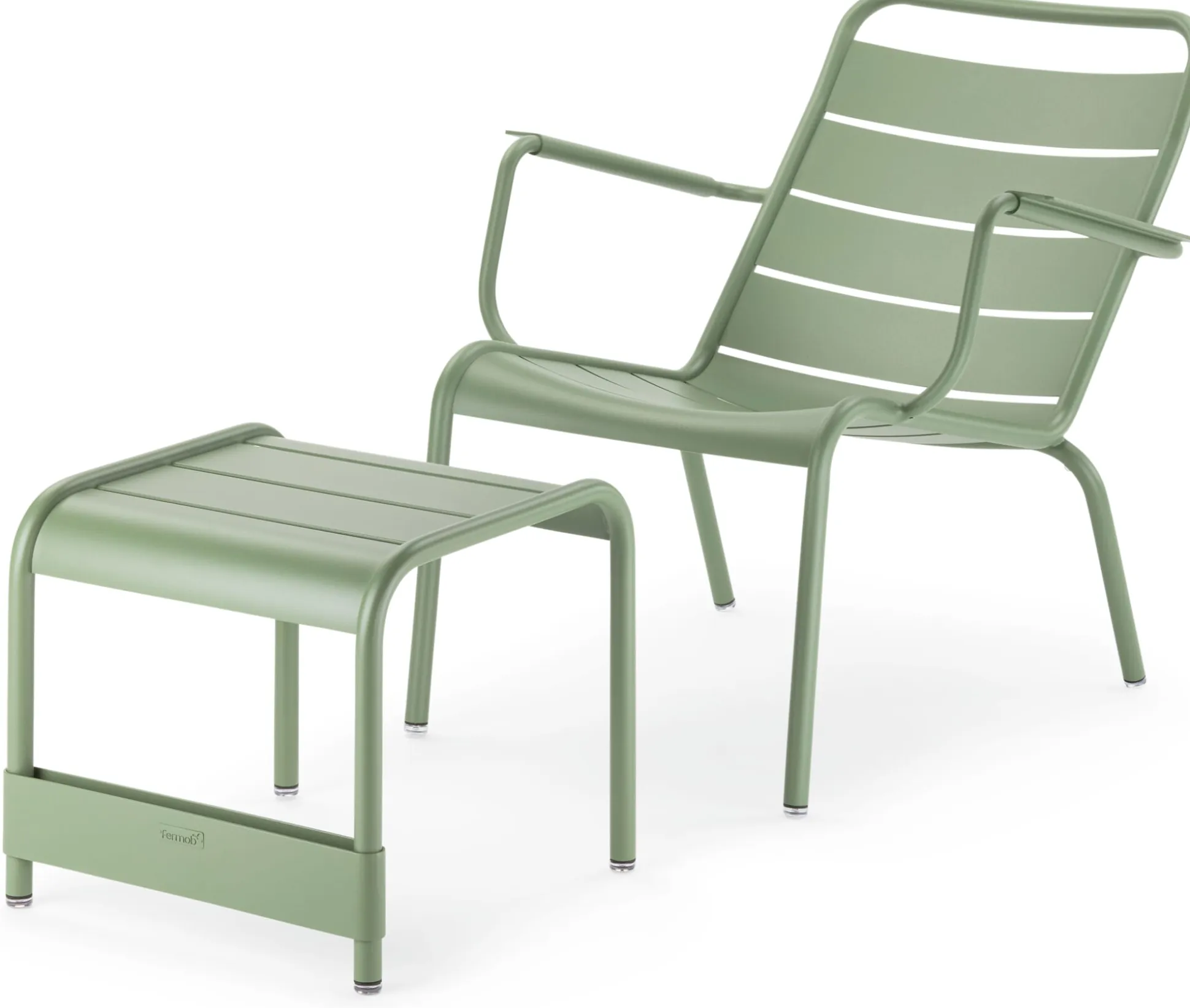 Ein Hocker, der ebenso gut als Beistelltisch genutzt werden kann – oder, um den Liegekomfort noch zu erhöhen, als Fußteil, das zum Loungesessel aus der Luxembourg-Serie von Fermob passt. Rahmen aus Aluminiumrohr, Sitzfläche aus Aluminiumlatten. Polyesterpulverbeschichtung. Möbelgleiter aus Kunststoff. Höhe 40 cm, Breite 44 cm, Tiefe 42 cm. Gewicht 3 kg. Max. Belastungsgewicht 130 kg. Hergestellt in Frankreich.