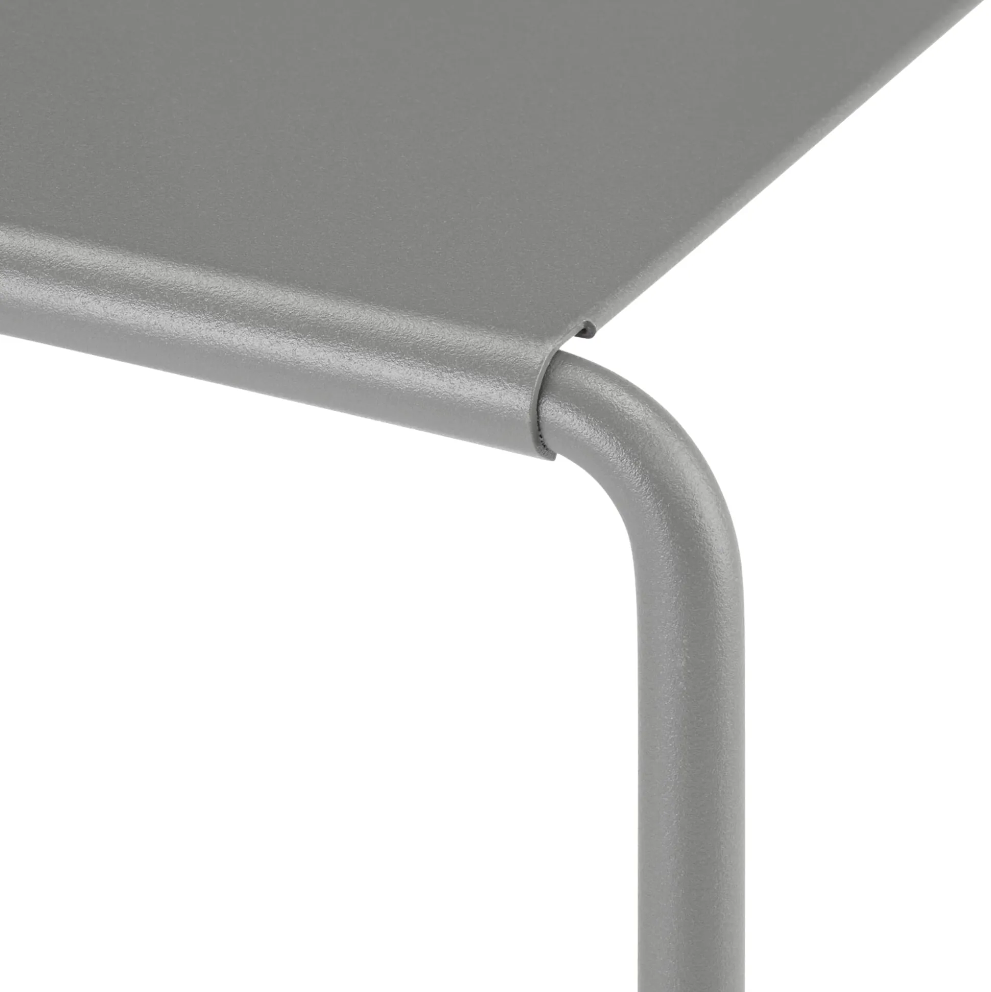 3er-Set. Tischplatte aus Stahlblech. Gestell aus Stahldraht. Polyesterpulverbeschichtung. Möbelgleiter aus Kunststoff. Großer Tisch: L 55 × B 30 × H 40 cm. Gewicht 3,7 kg. Mittlerer Tisch: L 50 × B 30 × H 34 cm. Gewicht 3,5 kg. Kleiner Tisch: L 40 × B 40 × H 37 cm. Gewicht 3,5 kg. Max. Belastungsgewicht 130 kg. Hergestellt in Frankreich.