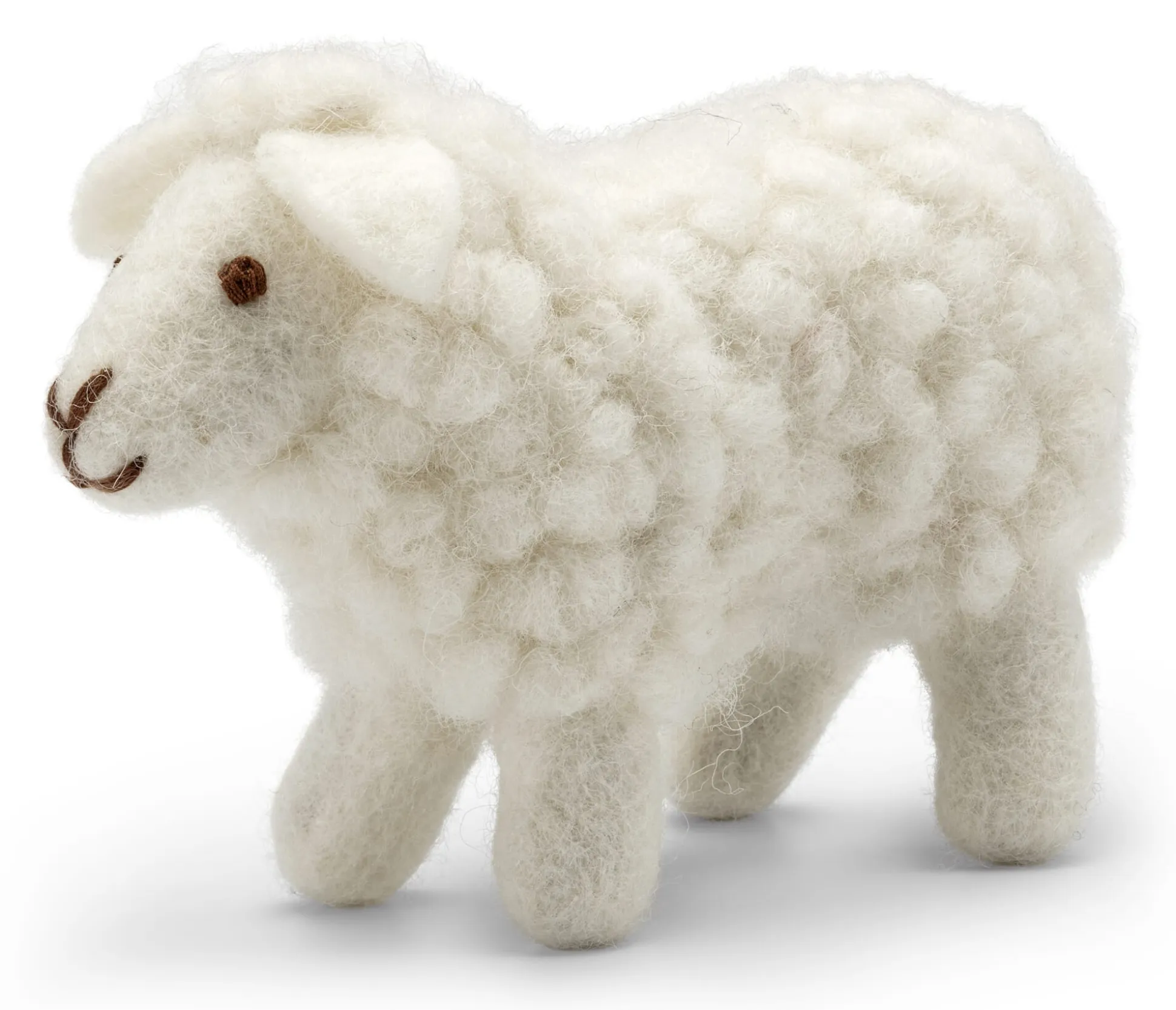 100% Schurwolle (Herkunft Neuseeland). Höhe 10,5 cm, Länge 14,5 cm, Breite 5 cm. Gewicht 45 g.