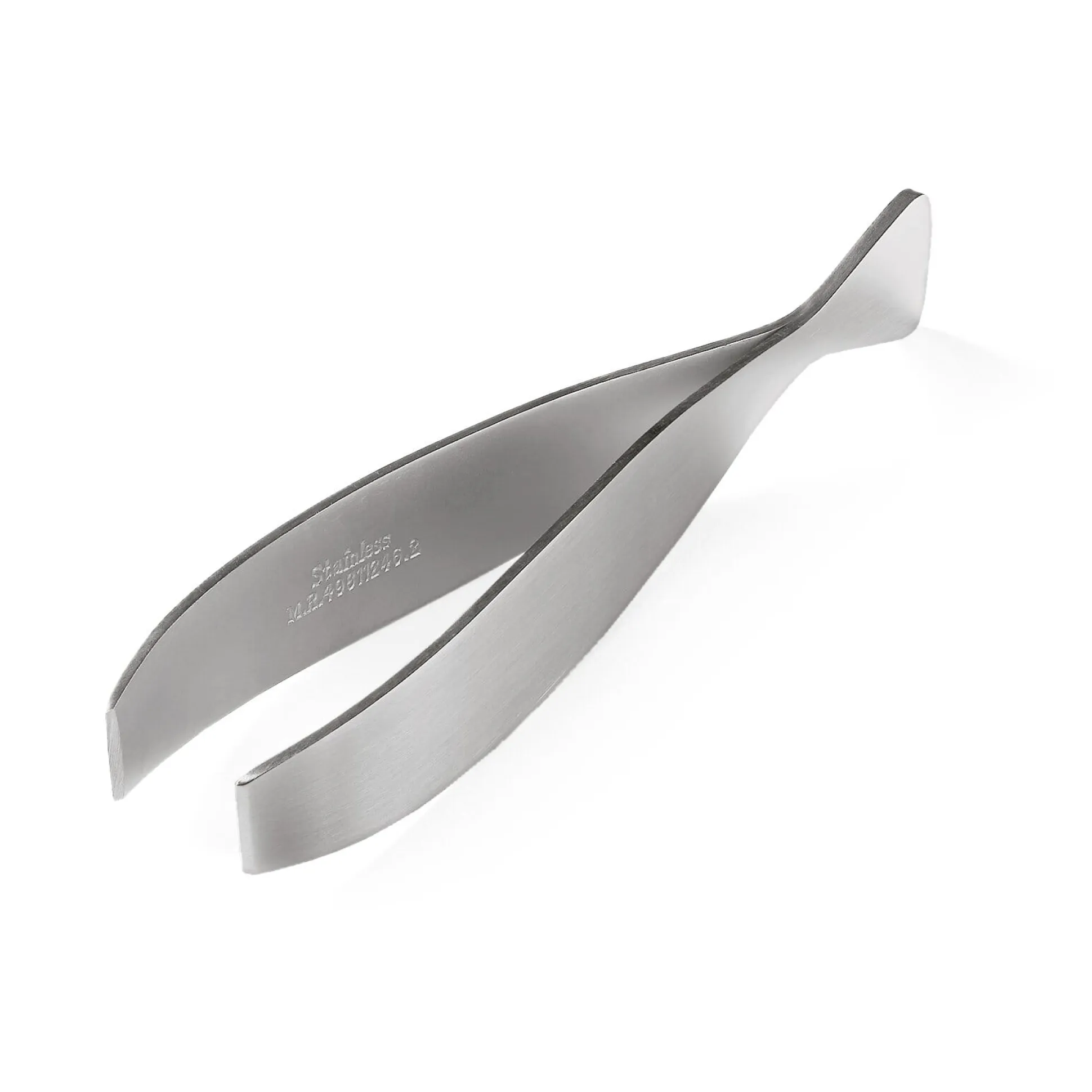 Eine Fischgrätenpinzette in Fischform aus Edelstahl, mit einer Materialstärke von 1,5 mm. Länge 13 cm, Breite max. 2 cm. Gewicht 50 g.