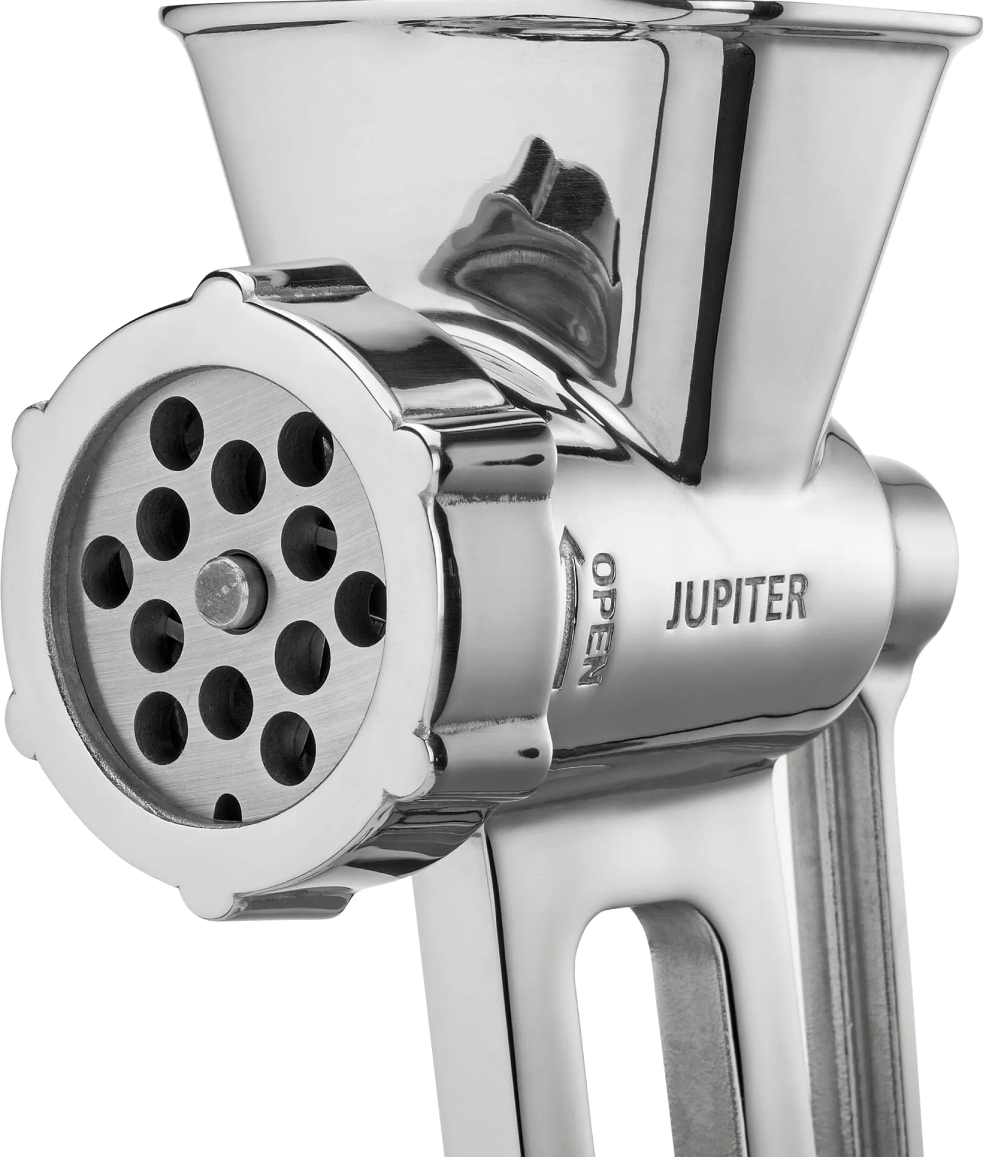 Ein Fleischwolf, wie er immer schon sein sollte. Ordentlich schwer und ordentlich zuverlässig, bewältigt dieses Modell von Jupiter selbst größere Mengen noch spielend. Denn das Wolfgut wird nicht einfach nur durchgedrückt, sondern am sauber geschärften Edelstahl-Kreuzmesser der Schnecke tatsächlich geschnitten. Drei Lochscheiben mit grober, mittlerer und feiner Lochung liegen bei: zum Faschieren von Fleisch, das von Sehnen befreit und in grobe Stücke vorgeschnitten wird; für die Zubereitung von Rohkost aus Obst und Gemüse; zum Zerkleinern von Hartkäse. Auch ein Spritzgebäckvorsatz fehlt nicht. Eine große Schüssel lässt sich leicht unterstellen. Und: Da er aus Edelstahl gefertigt ist, kann dieser Fleischwolf – anders als gleichartige Geräte aus Aluminiumguss – nach Gebrauch in der Spülmaschine gereinigt werden.
