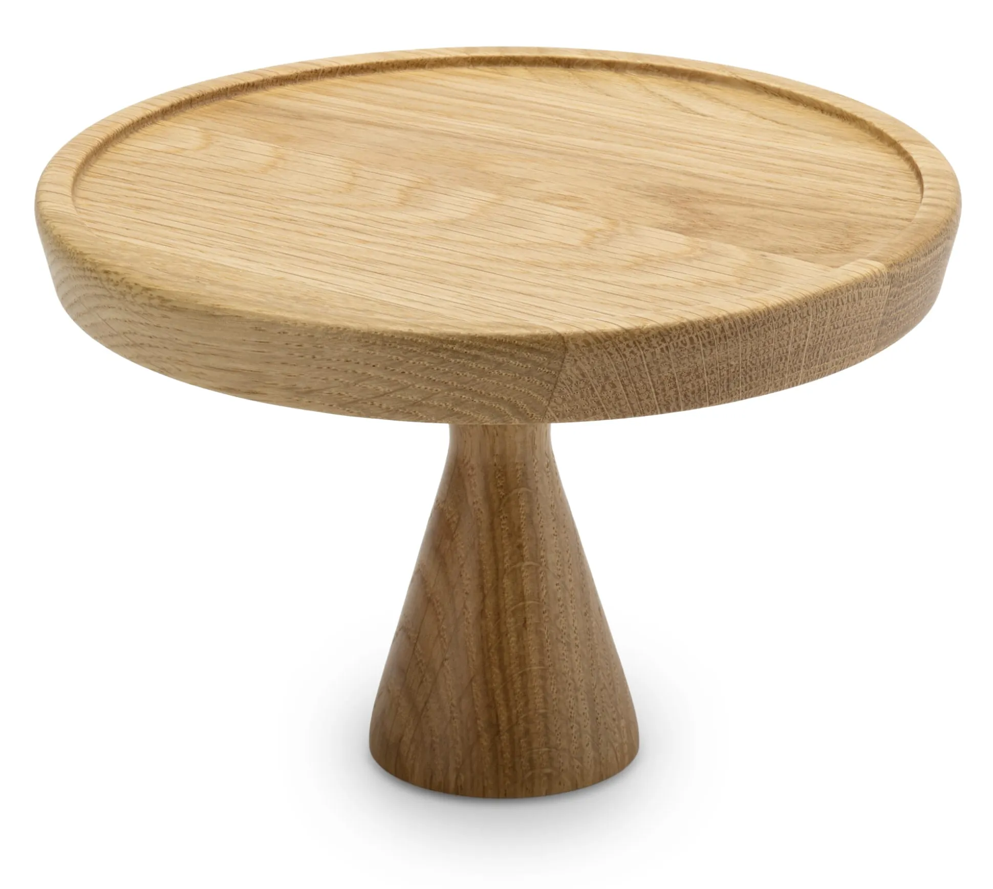 Konditorei und Holzverarbeitung haben eines gemeinsam: Beide sind ein Traditionshandwerk. Was liegt da näher, als sie bei Tisch und auf der Kaffeetafel zusammenzuführen? Servieren Sie in der hauseigenen Konditoreiwerkstatt – mit anderen Worten, in Ihrer Küche – selbst gebackene Schwarzwälder Kirsch, Sachertorte, Marzipan-Torte, Mokka-Sahne-Torte, Frankfurter Kranz, Bienenstich oder vielleicht auch Dresdner Eierschecke stilvoll auf diesem Tortenständer aus geöltem Eichenholz. Das schöne Teil kommt als Bausatz zu Ihnen. Dieser besteht aus zwei Tabletts – einem mit großem und einem mit etwas kleinerem Durchmesser – und einem erhöhten Fuß, und alle drei Teile lassen sich ganz einfach miteinander verschrauben. So haben Sie die Wahl: Ob der Tortenständer auf großem oder kleinem Fuße stehen soll, entscheiden Sie schlicht und einfach nach dem Format des Backwerks, das Sie in Szene setzen möchten.