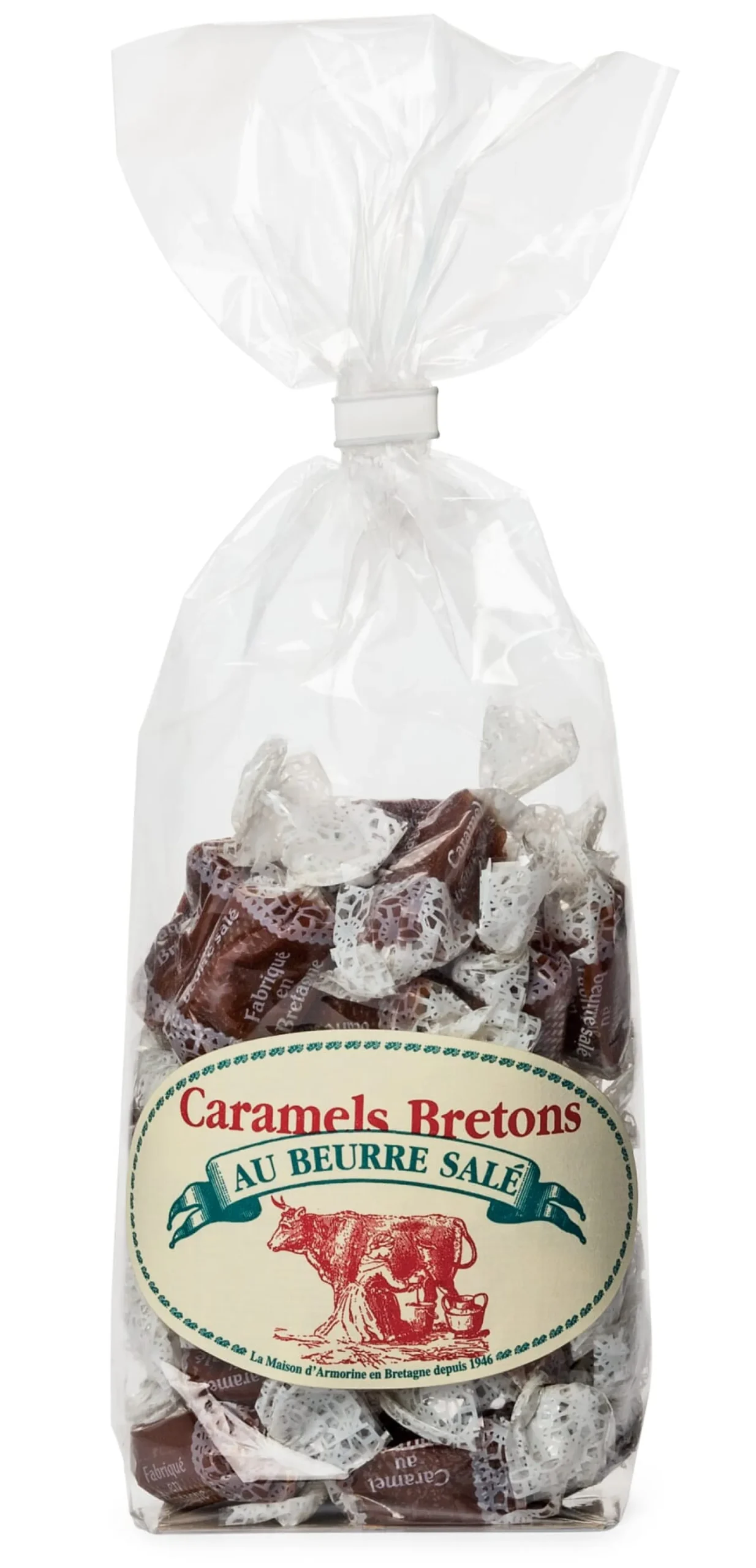 Aus Quiberon, einer Hafenstadt auf der gleichnamigen Halbinsel im Süden der Bretagne, kommen diese Butterkaramellen aus bretonischer Butter, Rohrzucker, Meersalz aus der Guérande, Milch und Sahne. Sie verbinden das festlandseitige, ruhige Gesicht von Quiberon in Form der buttrigen Konsistenz und harmonischen Aromen mit dem atlantikseitigen, rauen der Côte Sauvage (der wilden Küste) in Form der dunklen Farbe, des kräftig-würzigen Geschmacks und der deutlichen Röstaromen.