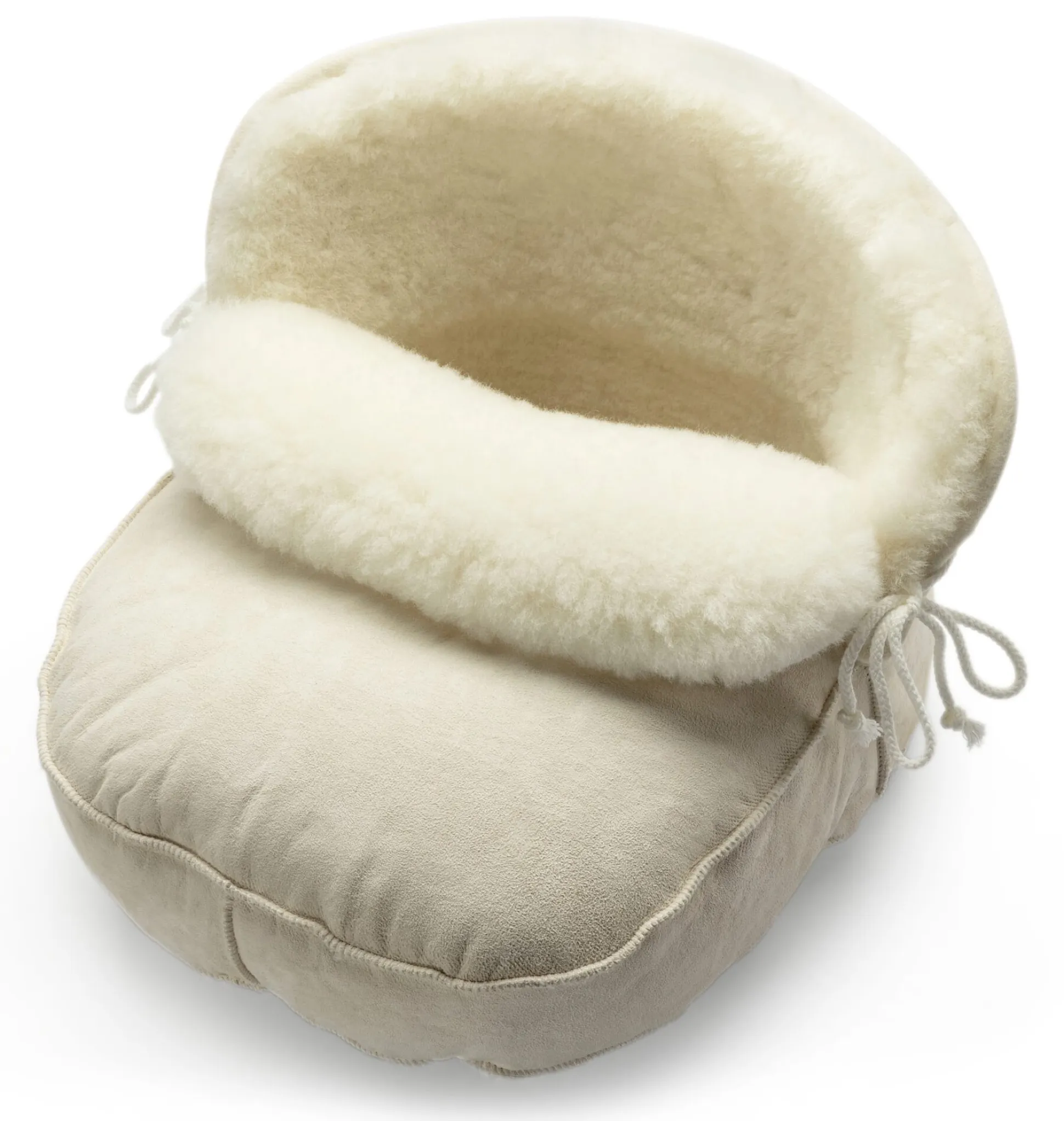 - Stets warme Füße: Fußtasche aus weichem Lammfell