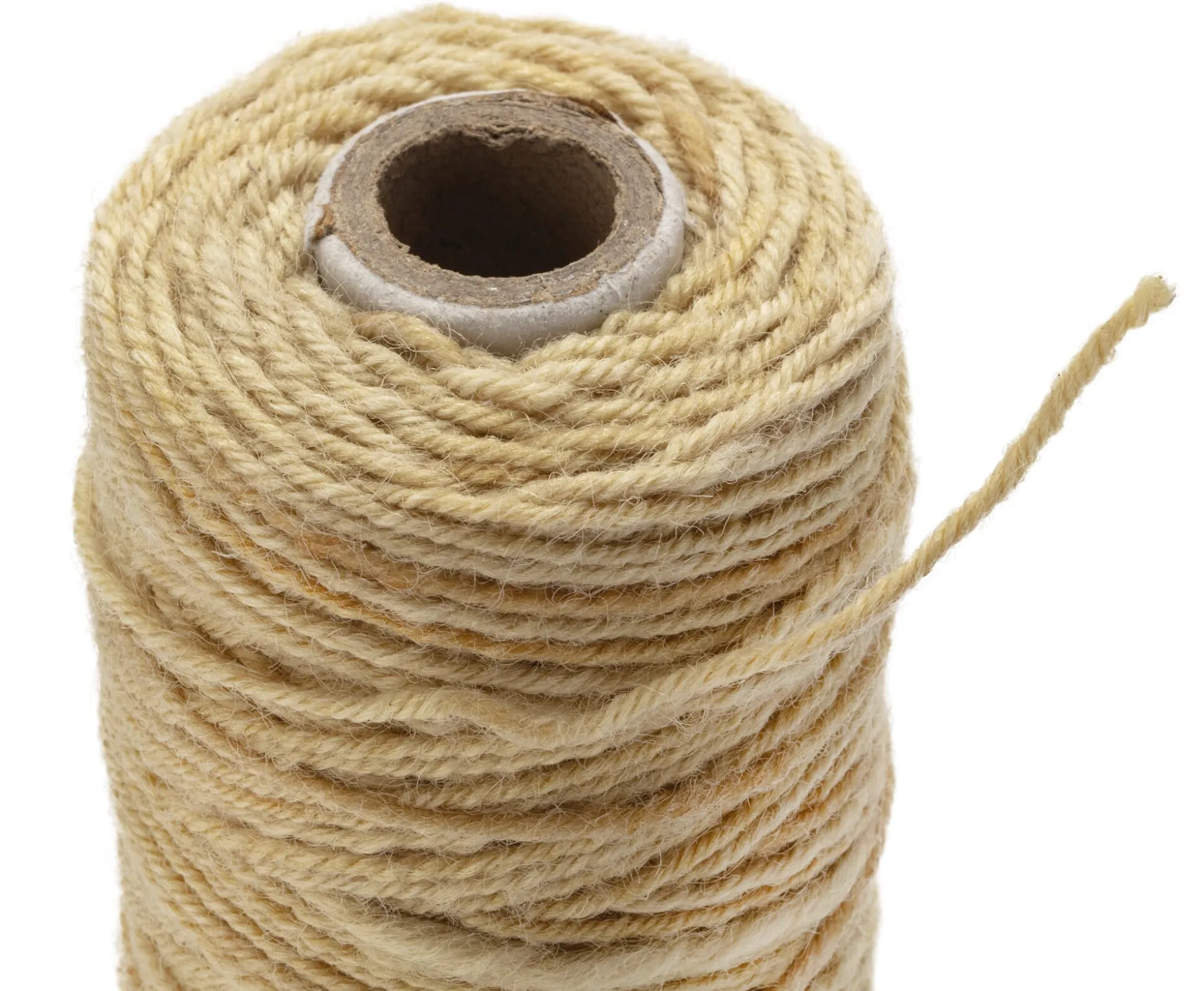 Aus Schafwolle und Naturkautschuk. Kann auf dem Kompost entsorgt werden. Auf einer Papphülse. 100-m-Rolle