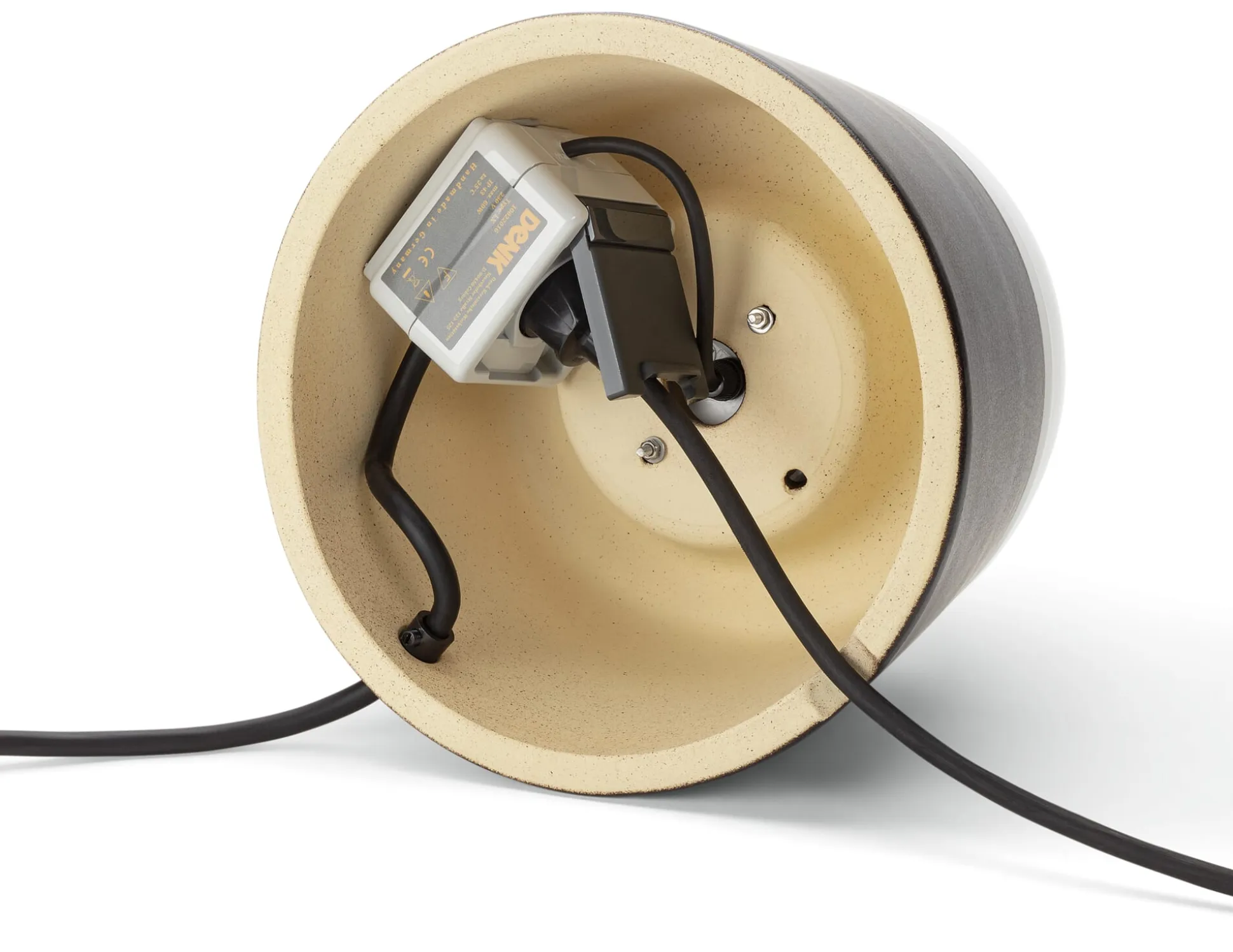 Eine Bodenleuchte mit einem Fuß aus frostfester, bei 1.250 °C gebrannter Keramik, auf dem eine Kuppel aus Opalglas sitzt. Die Leuchte besitzt ein 4,8 m langes Steckerkabel aus Gummi und eine wassergeschützte Steckdose im Fuß: So können mehrere Leuchten in Reihe geschaltet werden, und in der Funktion als mobile Außensteckdose lassen sich auch andere Geräte anschließen. Im Fuß der Leuchte befindet sich eine Aussparung für das Kabel, sodass dieser immer plan auf dem Boden steht.