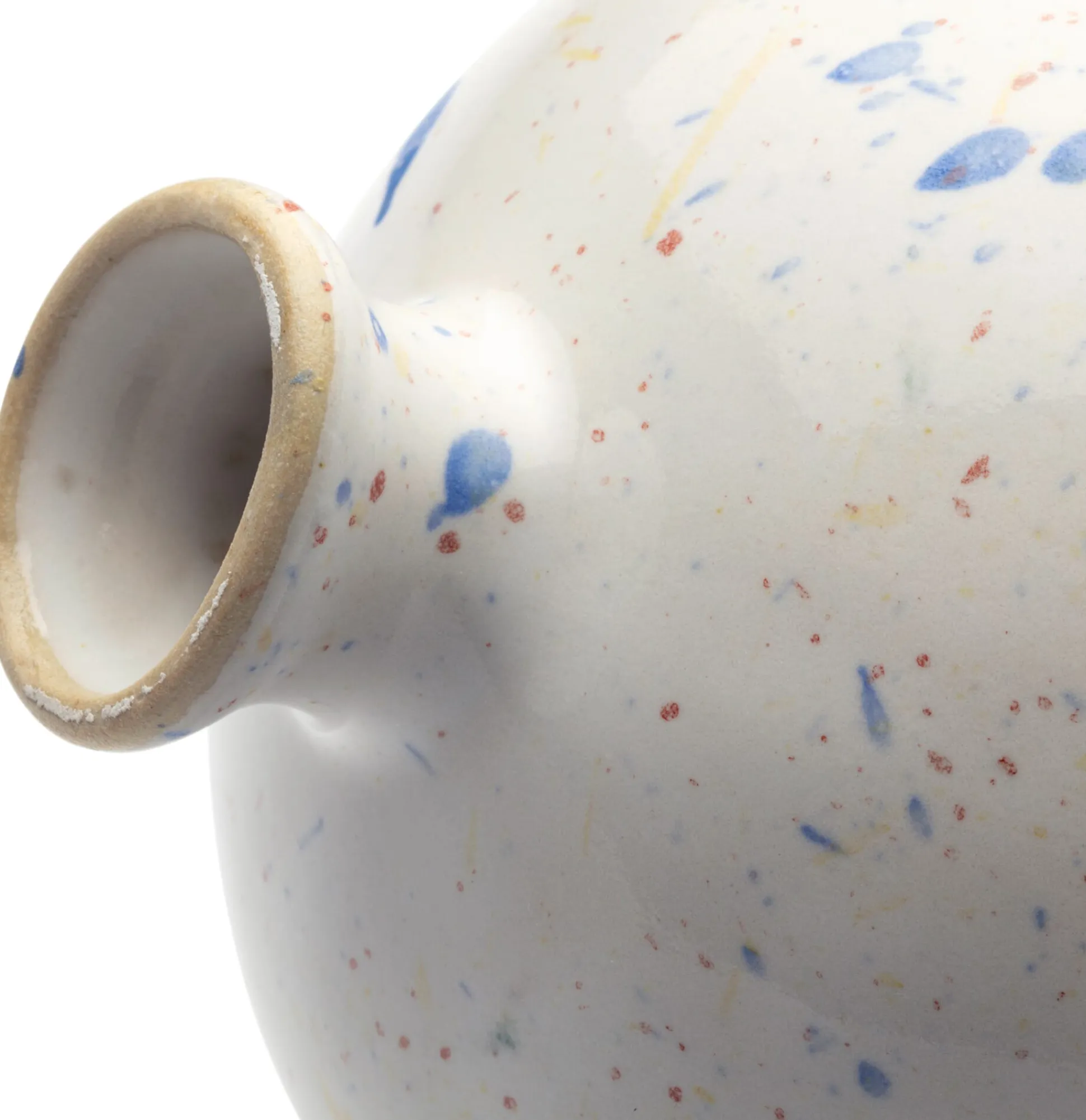 Keramik (Steinzeug) glänzend glasiert. Höhe 11 cm, Ø 9 cm. Öffnung Ø 1,5 cm. Gewicht 150–200 g. Hergestellt in Deutschland.