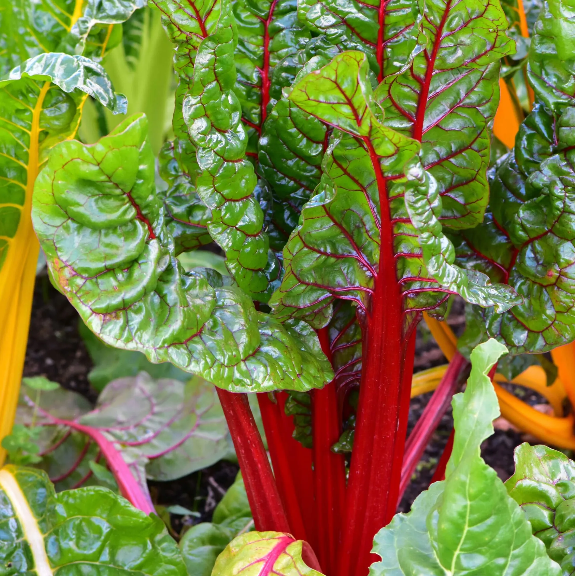 Eine Mischung grüner, roter und gelber Sorten, die als Dauergemüse nach Bedarf (es werden einzelne Blätter geerntet, aus der Basis treiben immer neue aus) und bis in den Winter geerntet werden kann. Sehr schmackhaft und dazu ausgesprochen zierend.
