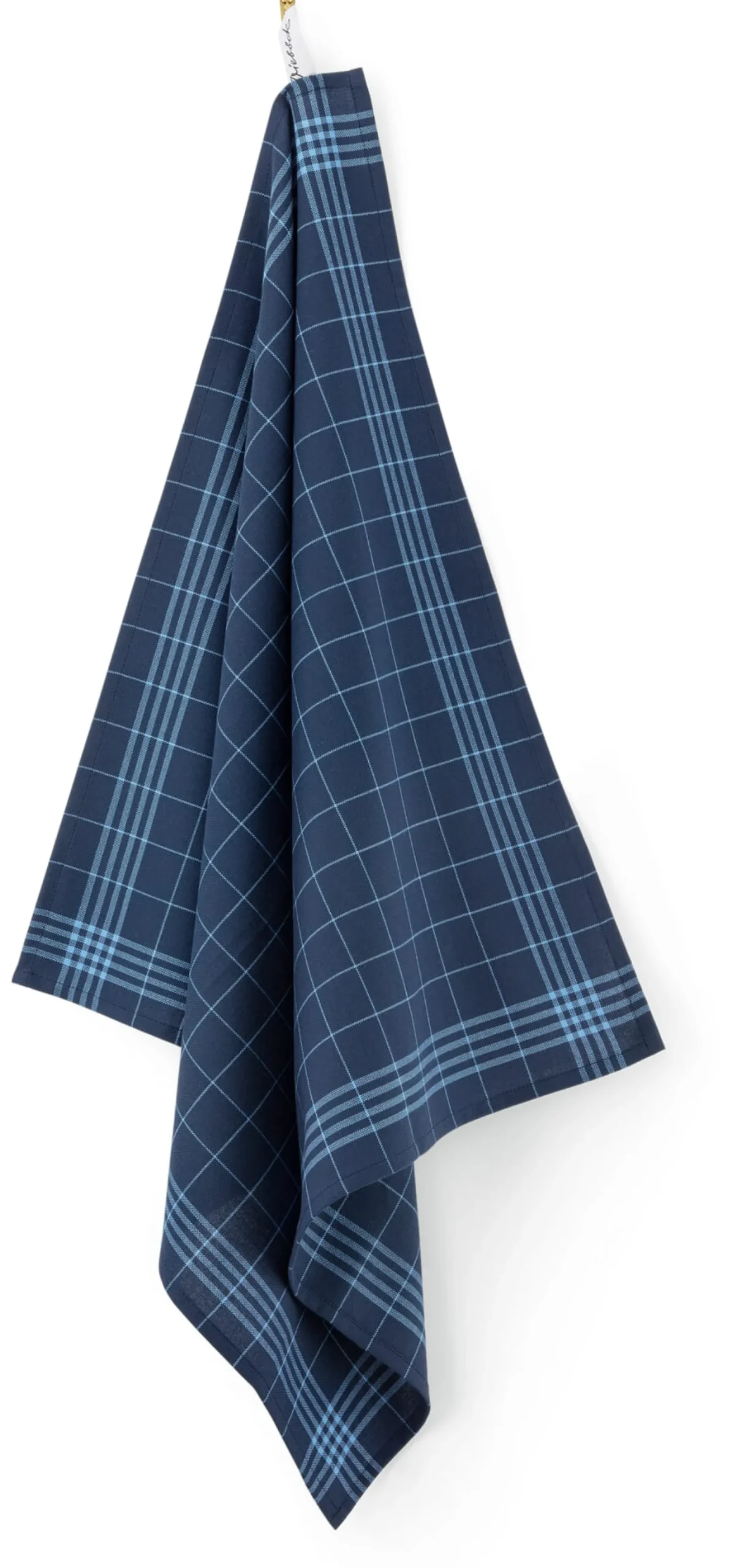 Dieses Geschirrtuch ist ganz klassisch aus saugfähiger Baumwolle gefertigt. In solider Vollzwirnqualität (Nm 34/2) und in dichter Leinwandbindung gewebt, erweist es sich als ausdauerndes Arbeitstier in der Küche, für das Abtrocknen von Geschirr und Töpfen bis hin zum Zudecken von Teig. Und so robust das Gewebe, so unempfindlich ist das Geschirrtuch dank der Farbgebung: Auf dem dunkelblauen Fond scheinen Flecken nahezu spurlos zu verschwinden – all jene, die viel mit Tomatensauce oder Roter Bete in der Küche zu tun haben, werden dies zu schätzen wissen.