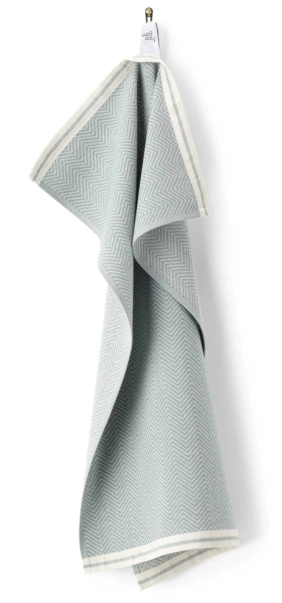 Aus der Traditionsweberei Framsohn im niederösterreichischen Waldviertel kommt dieses im Fischgratmuster gewebte Geschirrtuch. Seit 1908 befinden sich dort alle Arbeitsschritte unter einem Dach. Das weiche Baumwollgewebe ist mit einem mittleren Materialgewicht von 260 g/qm saugstark und kann viel Feuchtigkeit aufnehmen. Im laufenden Küchenbetrieb lässt sich das solide Tuch auch schon mal für die Hände verwenden.