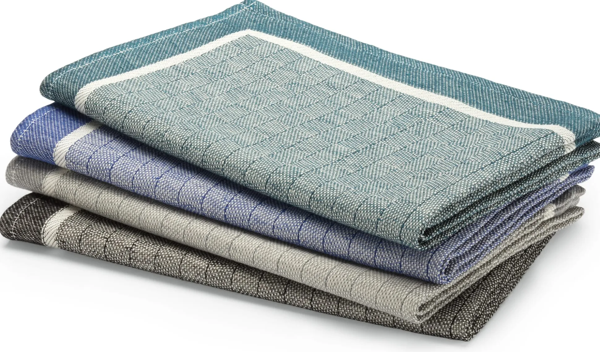 Gewebt wird das Geschirrtuch aus Halbleinen von der niedersächsischen Leinenfabrik Seegers & Sohn: festes Leinengarn (Garnstärke Nm 26) in der Kette und kräftiger Baumwollzwirn (Garnstärke Nm 50/2) im Schuss. Die Streifen und der umlaufende Rahmen sind jacquardgewebt und zeigen sich daher auf der Rückseite des Tuchs in gegengleicher Farbe. Wir empfehlen, das Geschirrtuch nach Gebrauch gut trocknen zu lassen, am besten über einem Handtuchhalter oder einer Leine ausgebreitet.
