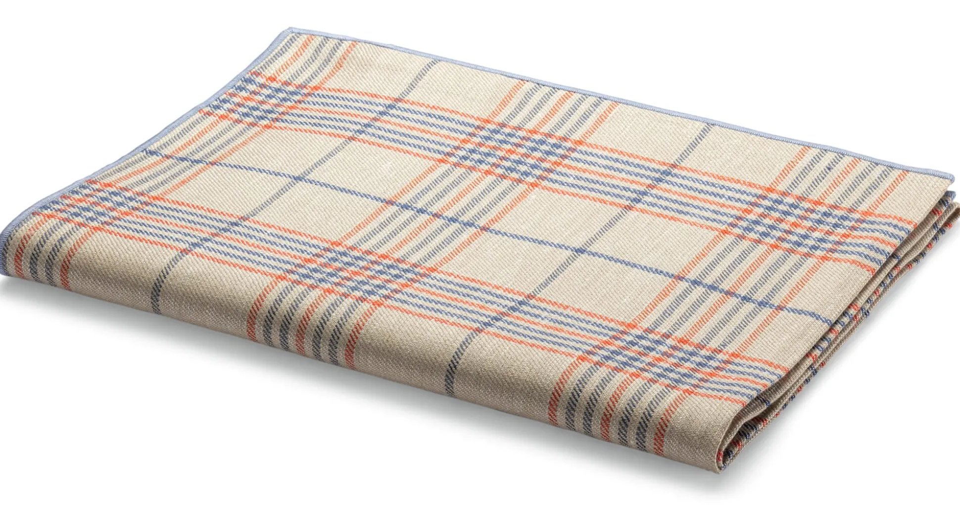 Ein Geschirrtuch der besonderen Art ist dieses aus der Leinenweberei von Erika Vaitkute: Mit seinem ungewöhnlichen blau-rot karierten Muster auf dem naturfarbenem Fond ist es bereits ein Blickfang in der Küche. Und auch wenn das Karo traditionell wirkt, so ist es doch ein Entwurf jüngerer Zeit, ebenso die Umkettelung der Kanten in hellem Blau, die für ein augenfälliges Detail sorgt. Aus reinem, europäischem Leinen gewebt, ist es saugstark, griffig und strapazierbar und wird leinentypisch mit jeder Wäsche weicher. Mit einem Flächengewicht von 210 g/qm ist es nicht nur zum Trocknen von Geschirr geeignet, sondern ein echter Allrounder in Ihrer Küche.