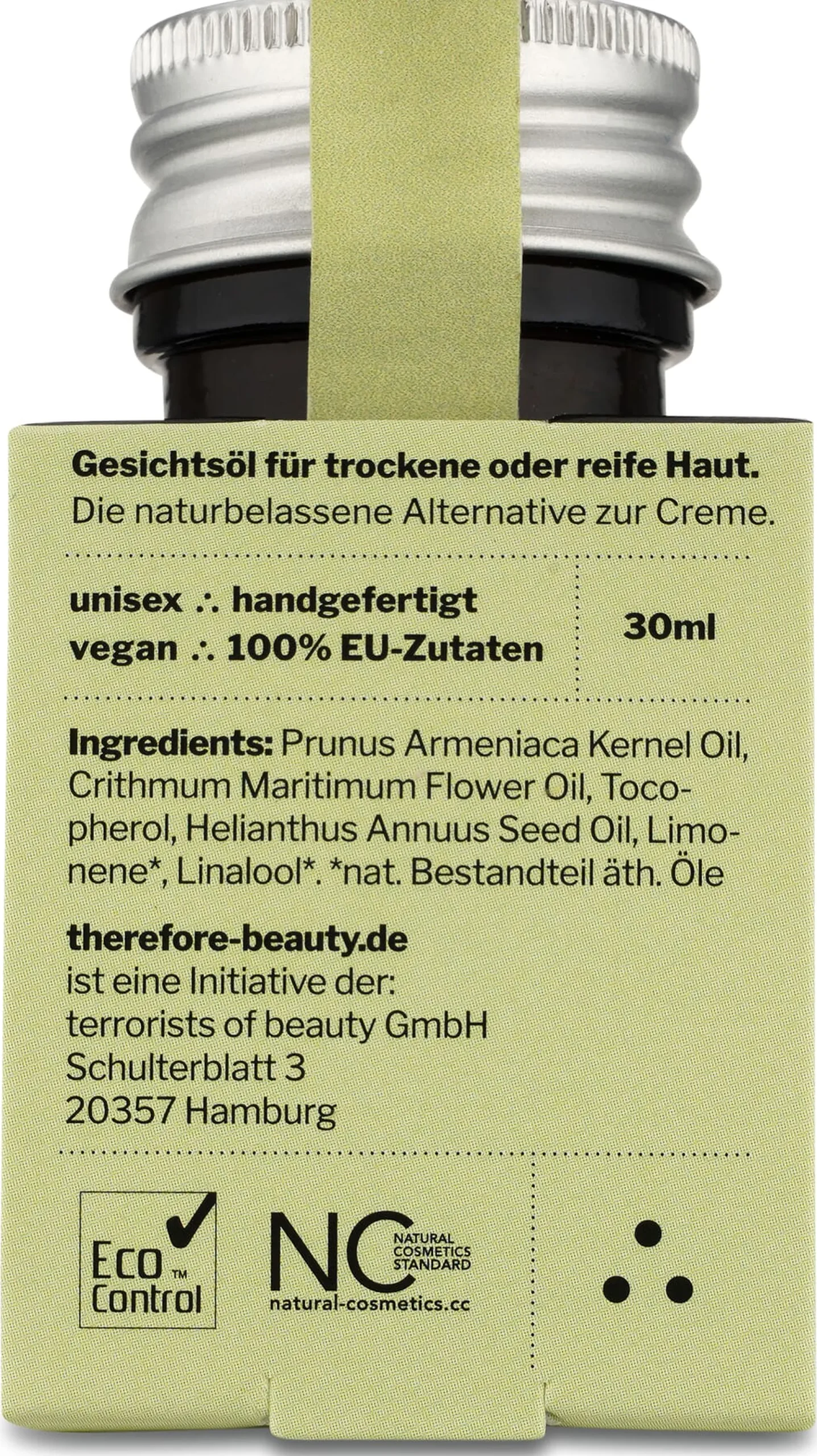 Inhaltsstoffe: PRUNUS ARMENIACA KERNEL OIL, CRITHMUM MARITIMUM EXTRACT, TOCOPHEROL, HELIANTHUS ANNUUS SEED OIL, LIMONENE, LINALOOL