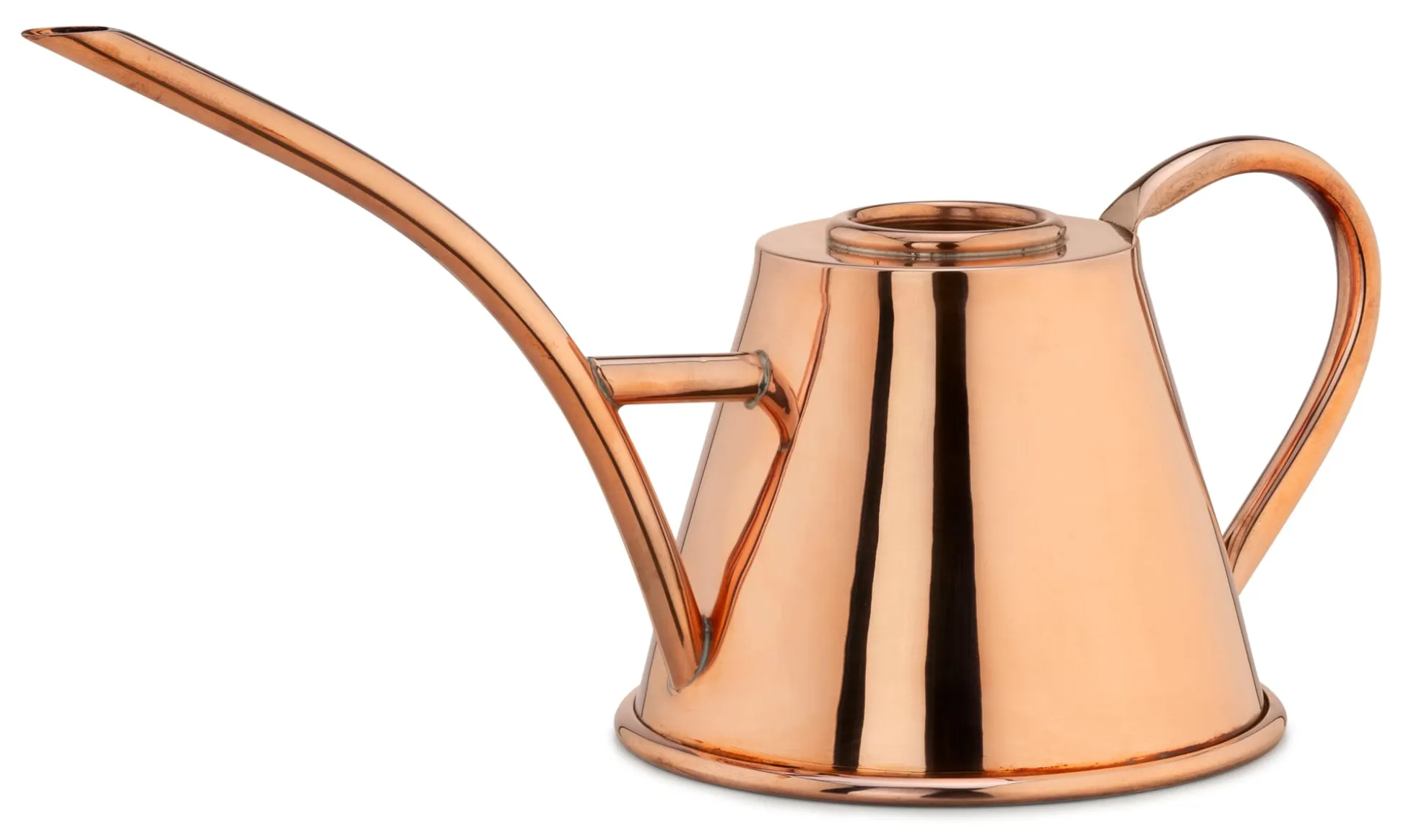 Vorbei sind die Zeiten des behelfsmäßiges Einsatzes von Sprudelflaschen, Plastikkrügen und tropfenden Tassen. Mit unserer Zimmergießkanne aus poliertem Kupfer wird die Zimmerpflanzenpflege zu einem reinen Vergnügen – und das nicht allein, weil sie so schön anzusehen ist. Denn das leicht geschwungene, lange und schmale Gießrohr ist geradezu perfekt auf das Bewässern von Pflanzen im Topf abgestimmt. Die Gießkanne kommt aus der Türkei, wo das Kupferhandwerk eine lange Tradition besitzt.