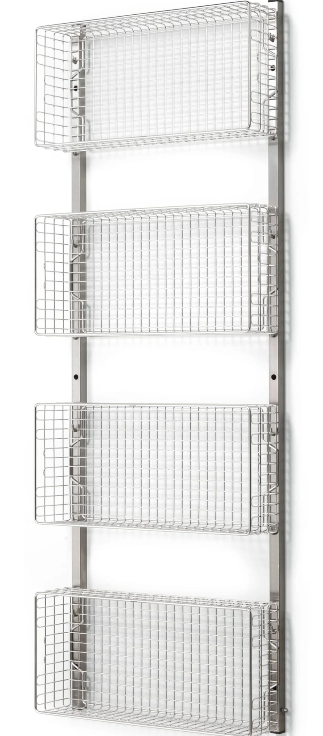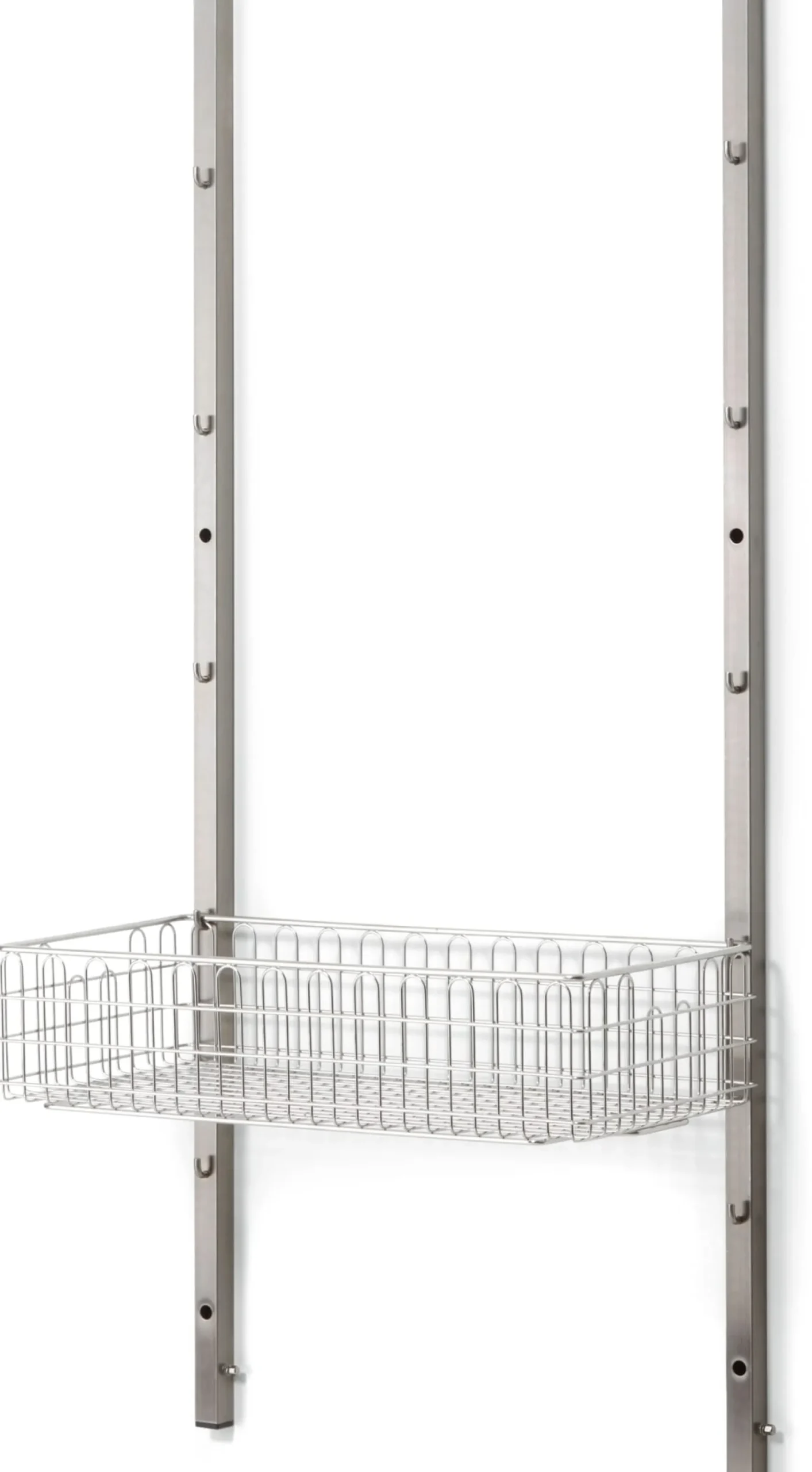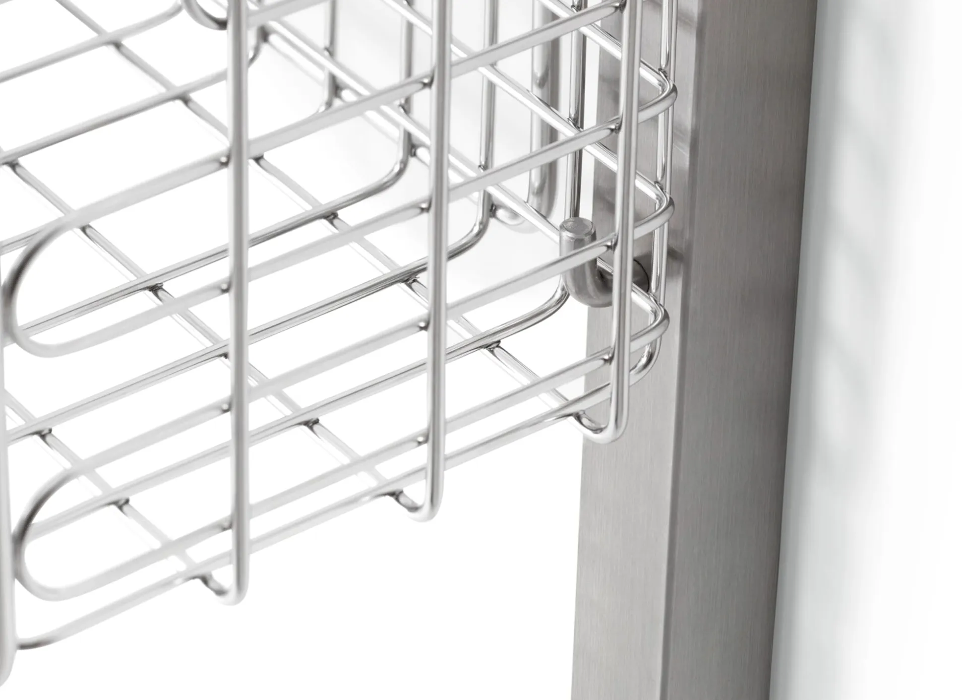 Das Regalsystem INOX wurde als Stauraumsystem für Sterilgut und Sterilkleidung entwickelt und hängt als solches in Laboren und anderen sterilen Räumen. Diese zum System gehörenden Gitterkörbe bieten viel Platz für allerlei Staugut und werden werkzeugfrei in die zugehörigen Wandschienen eingehängt. Ob Handtücher im Badezimmer, Geschirr in der Küche oder Schals und Fahrradhelme in der Garderobe: In den Gitterkörben findet alles einen gut durchlüfteten und einsehbaren Platz. Die Körbe sind aus hochwertigem, elektrolytisch polierten Edelstahl-Rundmaterial aus dem Medizinalbereich gefertigt, nahezu unkaputtbar und leicht zu reinigen. Der stirnseitige Tragegriff sorgt für gute Handhabung, die Form des Rahmens macht die Körbe stapelbar.