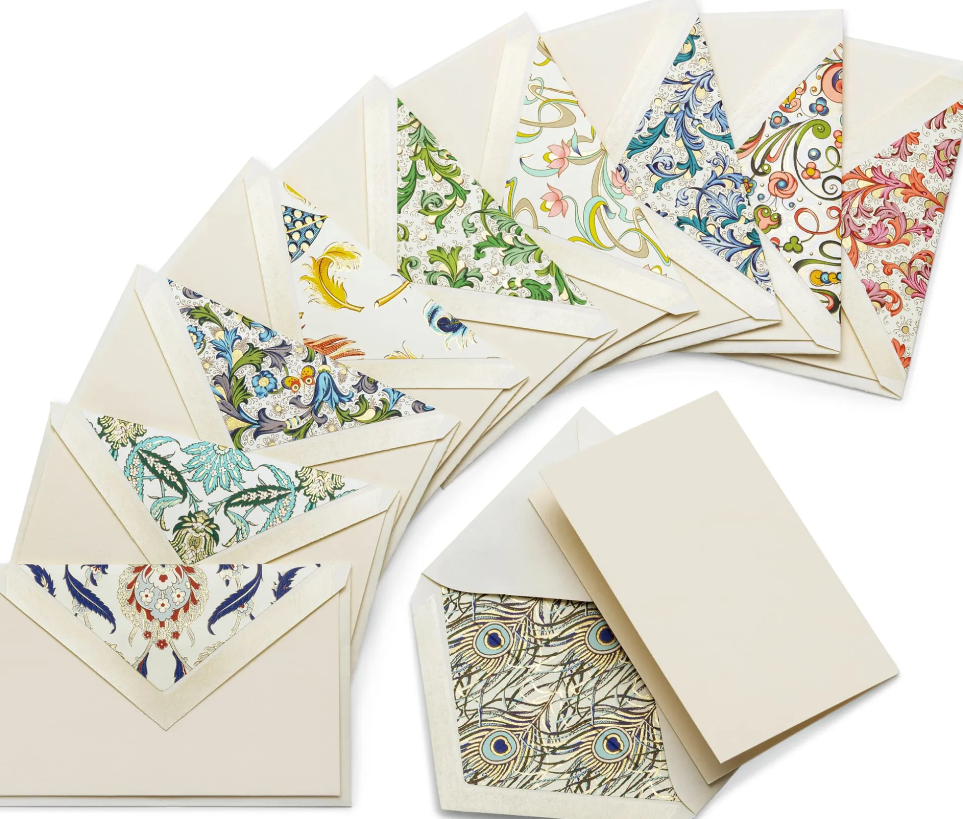 - Hochwertige Kuverts: mit Florentiner Papier gefüttert