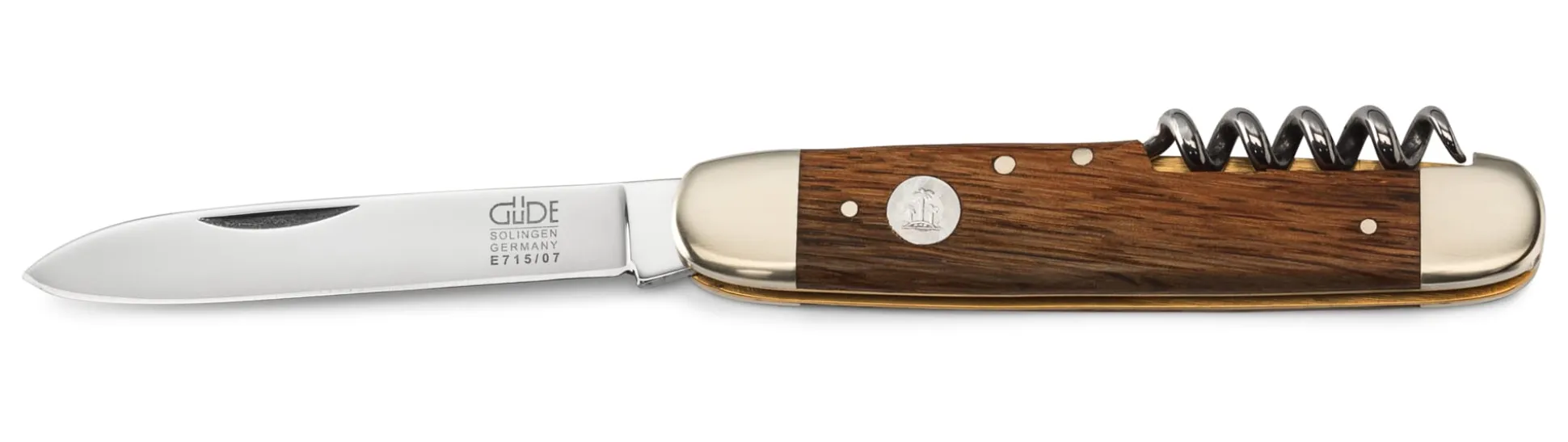 Bei Franz Güde in Solingen entstehen sonst geschmiedete Küchenmesser. Für dieses Herrenmesser genannte Taschenmesser hat man sich dort mit einem benachbarten Betrieb zusammengetan, dessen Spezialität Taschenmesser seit Generationen sind. Die Vorlage für dieses stammt von 1914.