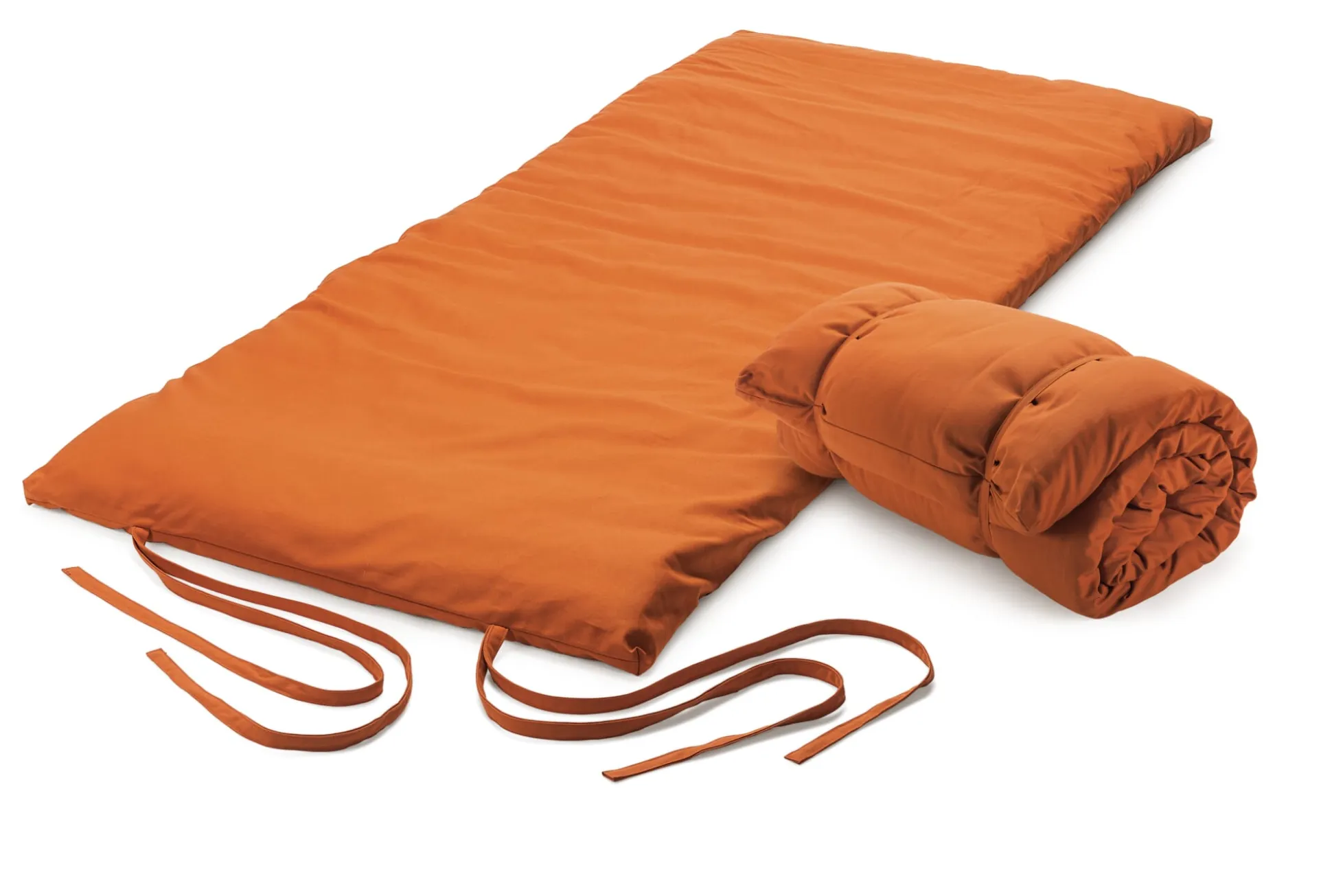 Diese Yoga- und Gymnastikmatte gibt auch ein passables Notbett ab. Ihre Füllung besteht aus einem 4 cm hohen Nadelvlies. Beim Vernadeln wird das Vlies noch mechanisch verfestigt und dadurch sehr dicht, reißfest und dennoch biegsam. Und da es außerdem punktversteppt ist, behält es auch langfristig seine Form. Der Außenbezug ist als kräftiges, strapazierbares Halbpanama-Gewebe gefertigt und bis 40 °C waschbar. Die Baumwolle für Bezug, Füllung und Inlett stammt aus kontrolliert biologischem Anbau.