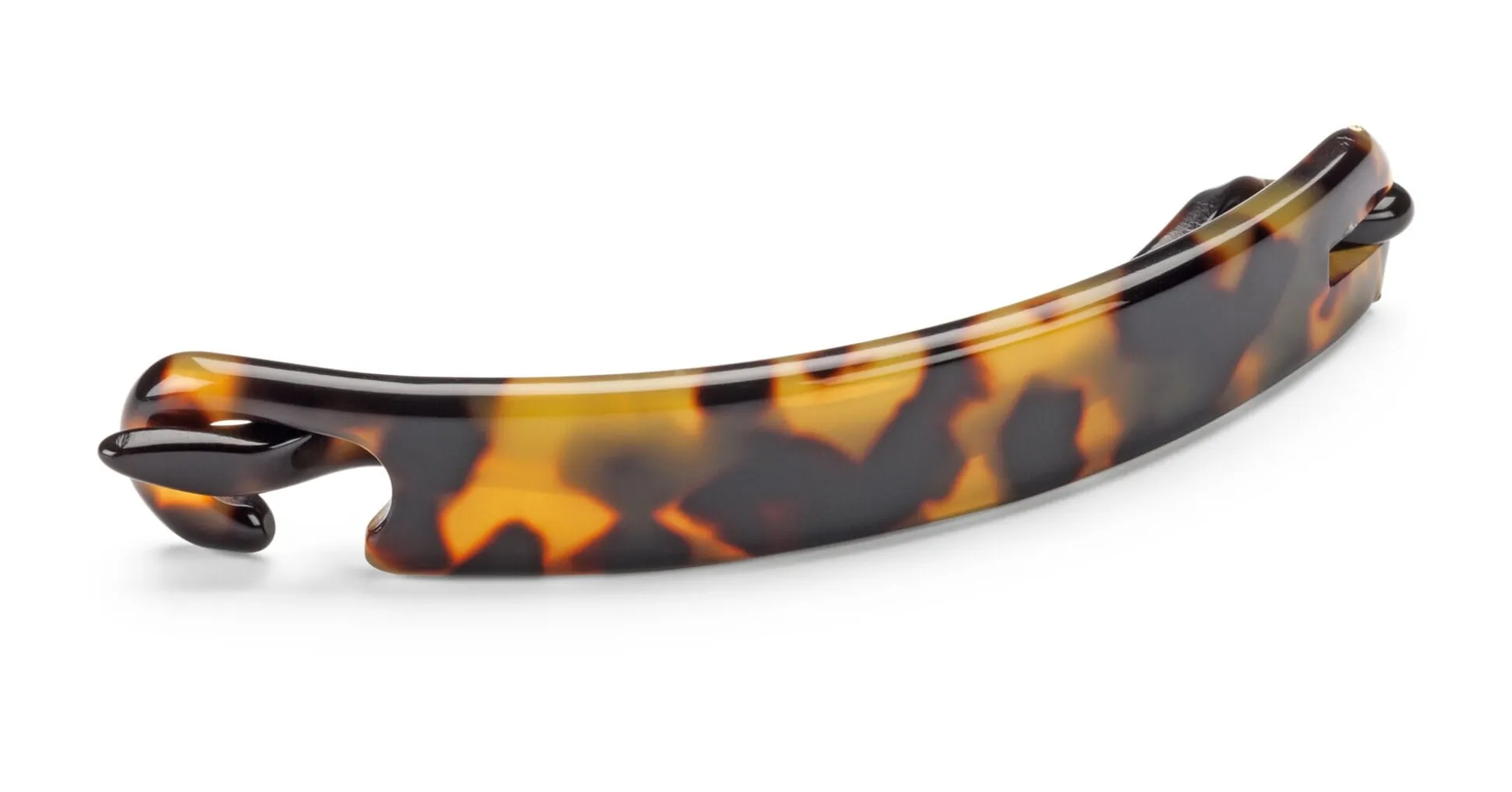 Die Haarspangen sind aus dem bei uns ob seiner materialtechnischen und optischen Eigenschaften sehr beliebten Zelluloseazetat gefertigt. Das hier verwendete Rohmaterial in Schildpattoptik stammt aus Italien und ist das edelste, das erhältlich ist. Die Weiterverarbeitung erfolgt in Deutschland in Handarbeit. Alle Produkte sind sorgfältig poliert und entgratet.