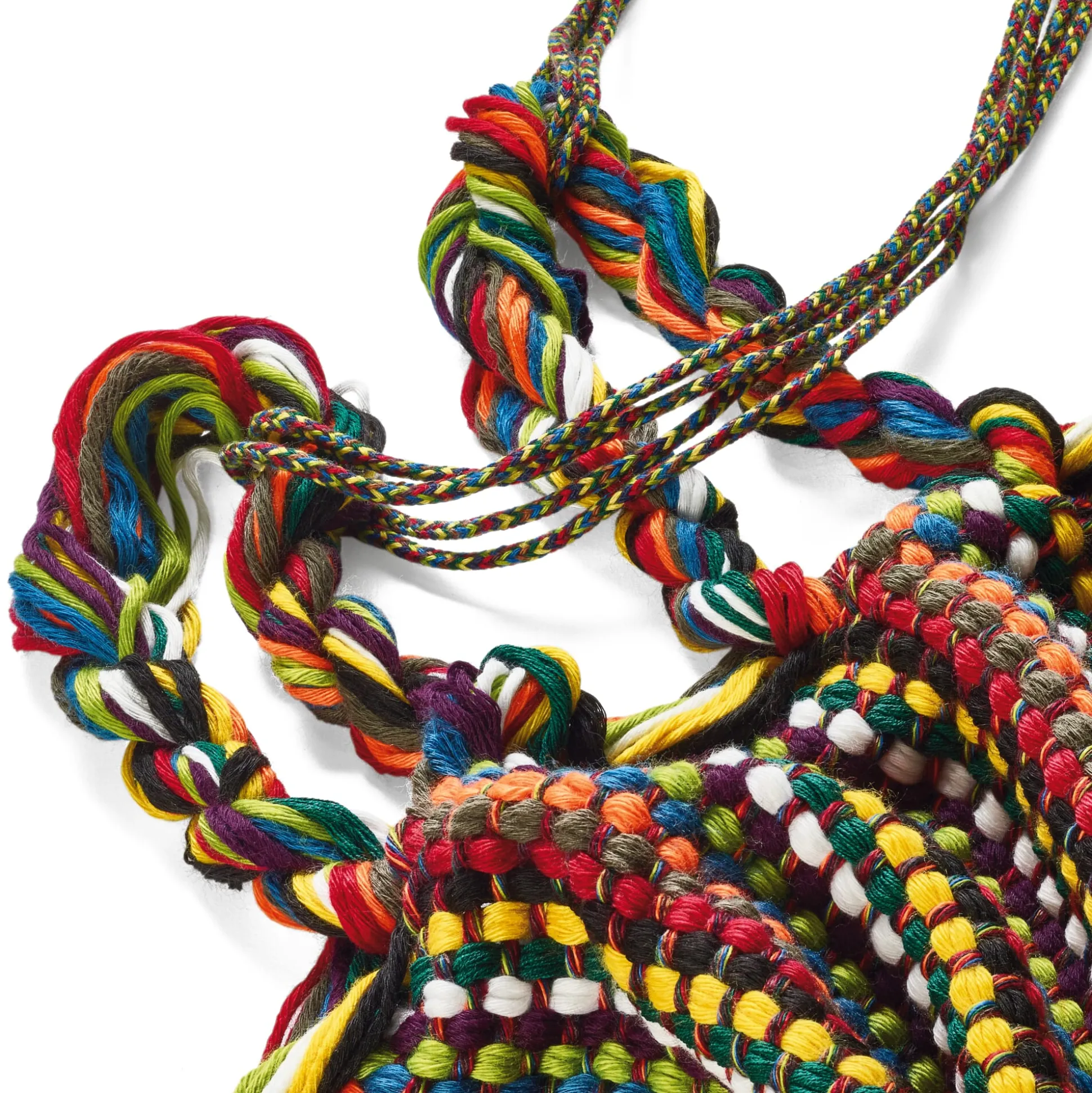 Der Stoff wird in einer speziellen Endloswebtechnik gearbeitet, bei der eine festgelegte Anzahl baumwollener Endlosfäden so miteinander verwoben wird, dass im Gewebe weder störende Knoten noch lose Randfäden auftreten und jeder einzelne Faden mit dem Trägerseil fest verbunden ist. Eine derart gewebte Stoffbahn ist überaus reißfest und sichert eine gleichmäßige Lastenverteilung; ihre Materialopulenz spürt man auf den ersten Griff. Der hölzerne Fixierstab verhindert ein Zusammenrutschen der Matte, der Drehwirbel am Karabinerhaken – die beide aus verzinktem Stahl gefertigt und damit unempfindlich sind – ermöglicht die Höhenanpassung des Hängesessels. Das Tragseil besteht aus gutem Grund aus synthetischem Material. Der österreichische Hersteller setzt hier eine UV- und witterungsbeständige Polyestermischung ein, die abriebsicher ist und eine langfristige Belastbarkeit gewährleistet.