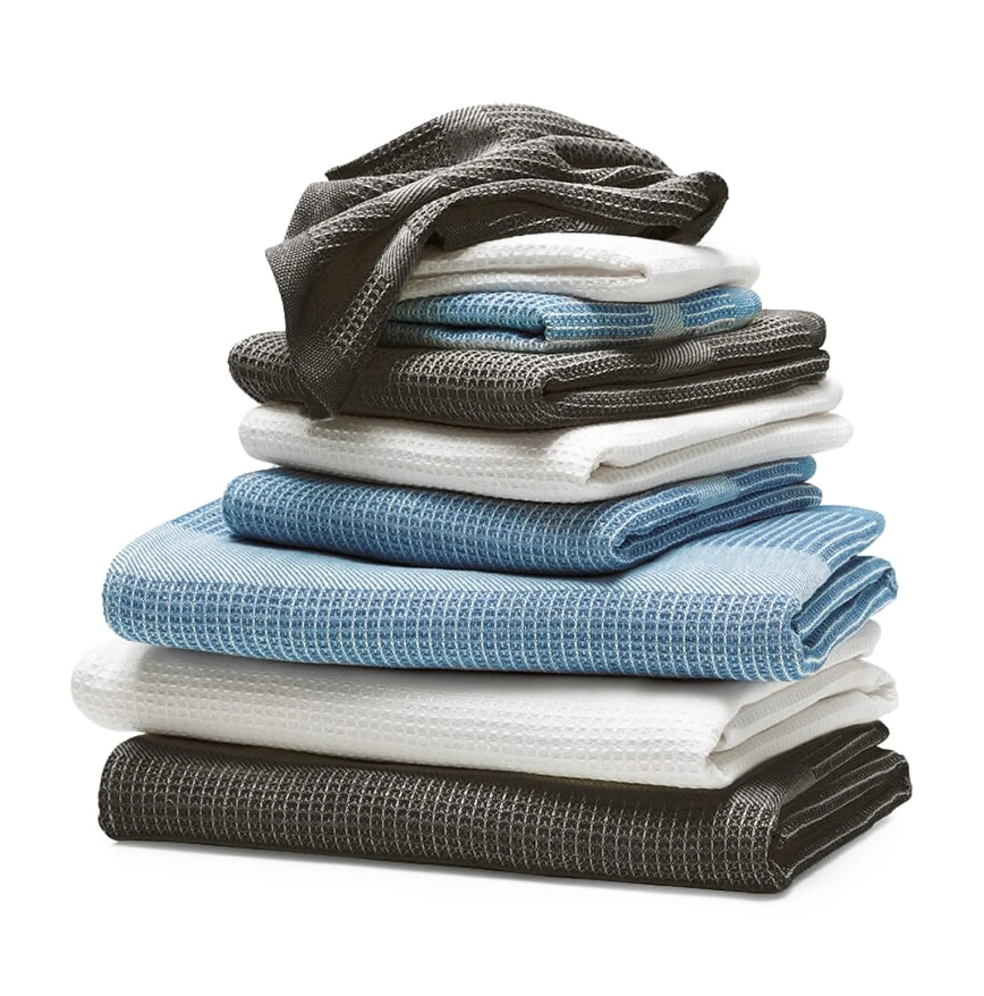 Plastische Struktur. Waffelpiqué aus HalbleinenHandtücher aus halbleinenem Waffelpiqué sind ideal für den Sommer: Nicht so dick wie Frottier, sind sie dennoch von recht schwerer Qualität, nehmen sehr viel Feuchtigkeit auf, trocknen aber auch schnell wieder. Durch die reliefartige Webstruktur – nach dem ersten Waschen springt das Material noch etwas ein und die Waffelstruktur verstärkt sich – hat Waffelpiqué beim Abtrocknen eine leicht massierende Wirkung, wodurch die Durchblutung der Haut angeregt werden kann. Der angenehm körnige Griff des Gewebes entsteht durch die Verwendung eines strapazierbaren Leinenzwirns in der Kette (Nm 13/2). Das Leinen fühlt sich außerdem angenehm kühlend an.