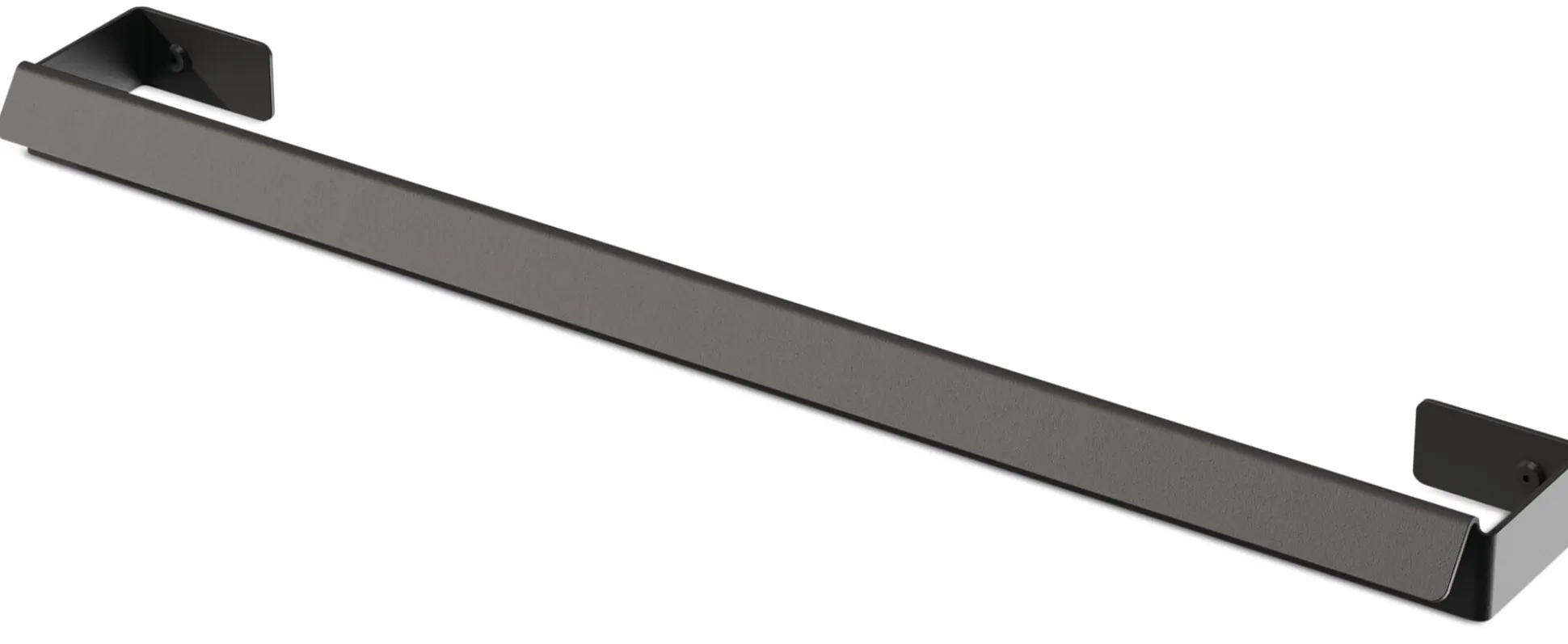 Handtuchhalter in grafisch-klarer Form aus gekantetem Aluminium, dem die matt-schwarze Pulverbeschichtung eine widerstandsfähige und wasserfeste Oberfläche verleiht. Mit seiner Breite von 60 cm bietet er Handtüchern und Duschtüchern einen Trockenplatz.