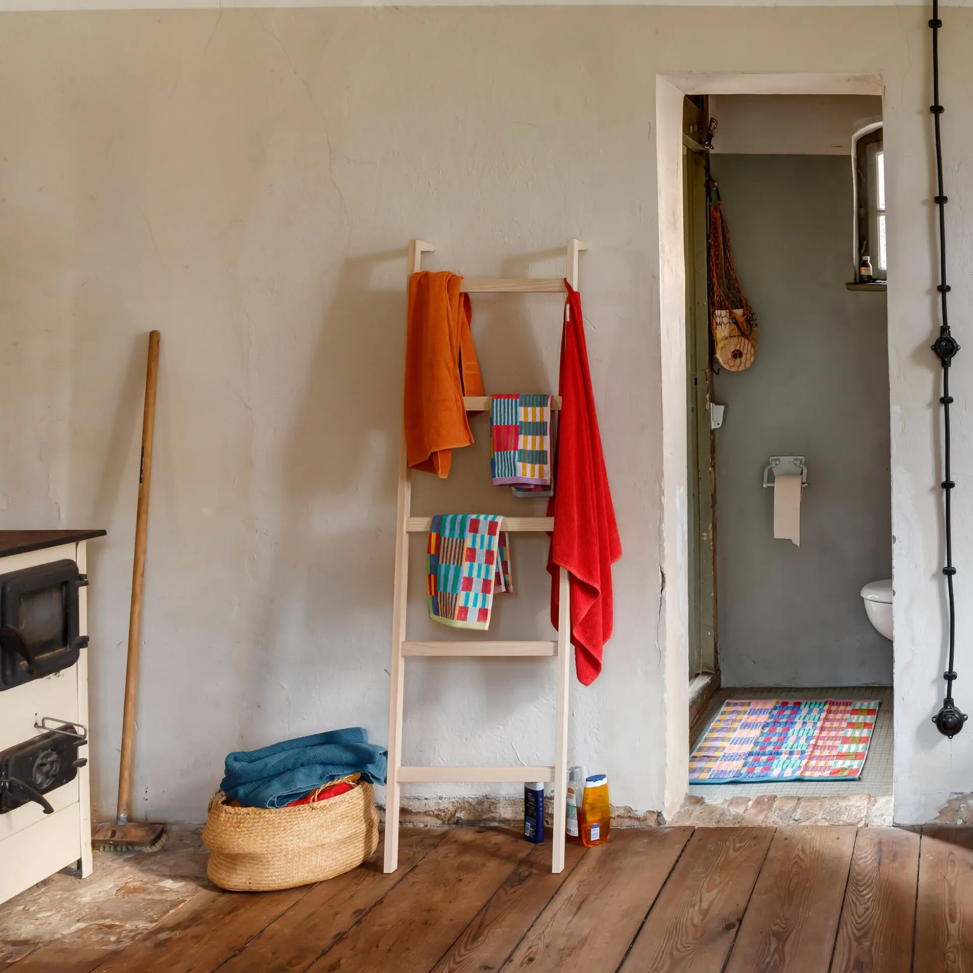 Montagelos angelehnt ist LEO schlichte Garderobe, Stummer Diener, Handtuchhalter – ein Helfer-Möbel für vielerlei Zwecke und Nutzen im Schlafraum, Bad oder Garderobe.