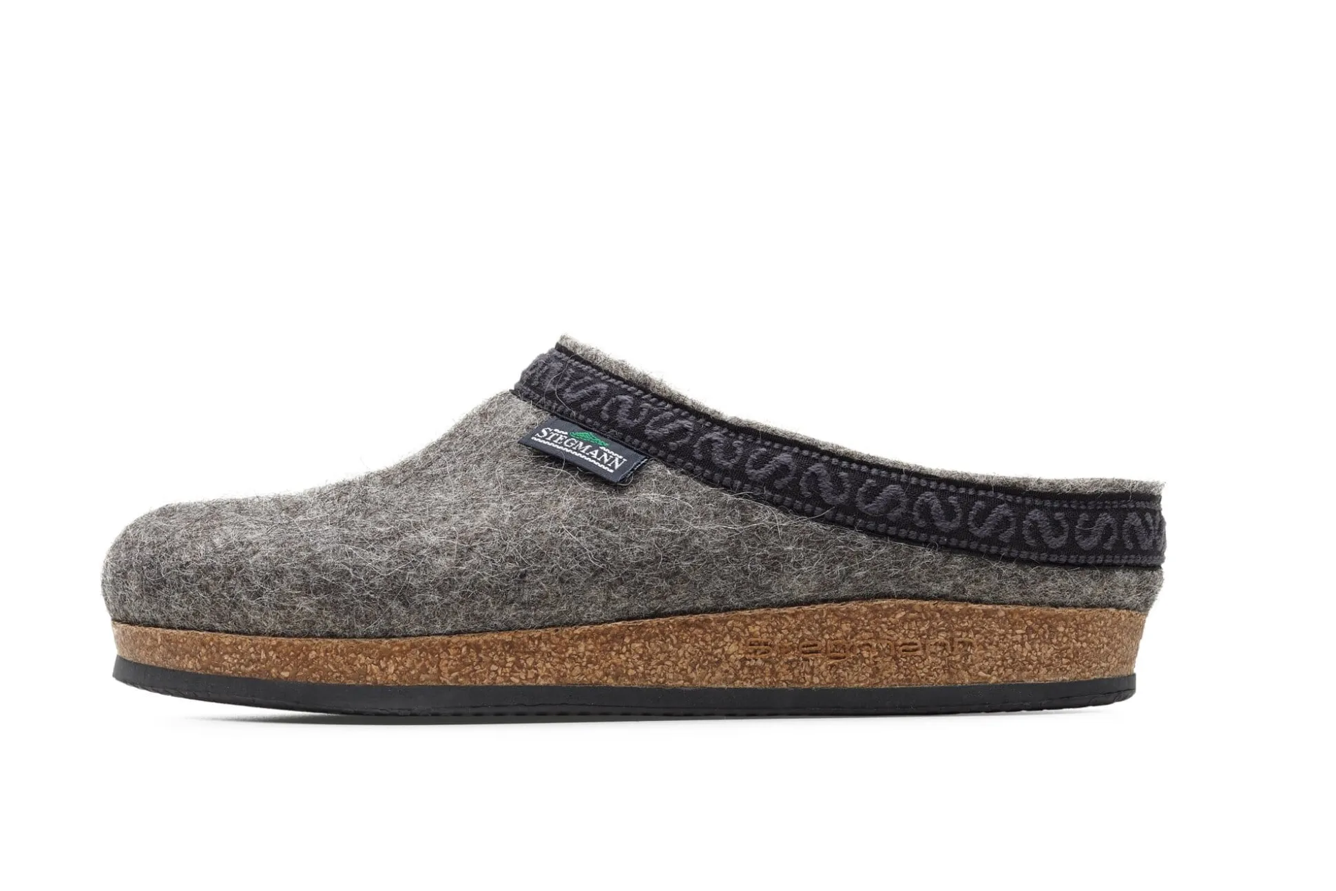 Für diesen Hausschuh der Marke Stegmann fertigt Gottstein aus einem Stück ungefärbter Wolle vom Tiroler Steinschaf einen Filzstumpen von beträchtlicher Stärke und fixiert diesen in einem speziellen Verfahren auf dem anatomisch geformten Kork-Latex-Fußbett. Das Verfahren ist deshalb so aufwendig, weil der Stumpen am Stück gefilzt und gänzlich ohne Naht verarbeitet wird. Der geschnittene Rand ist mit einer umlaufenden Webborte verstärkt. Die langlebige Laufsohle ist aus rutschhemmendem EVA-Kunststoff gearbeitet. Diesen Hausschuh bekommen Sie nur bei Manufactum.