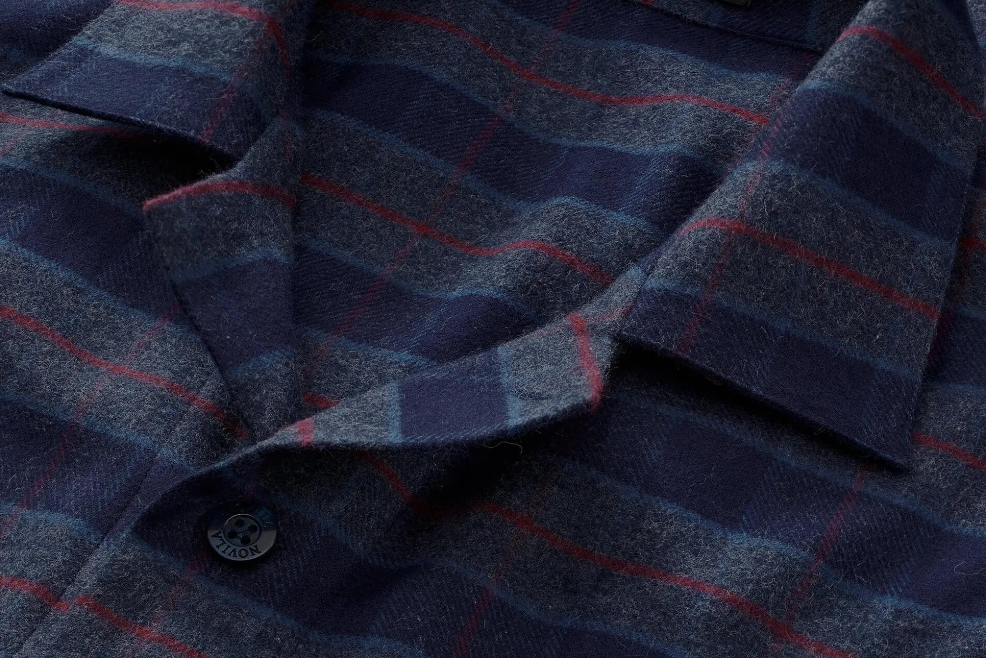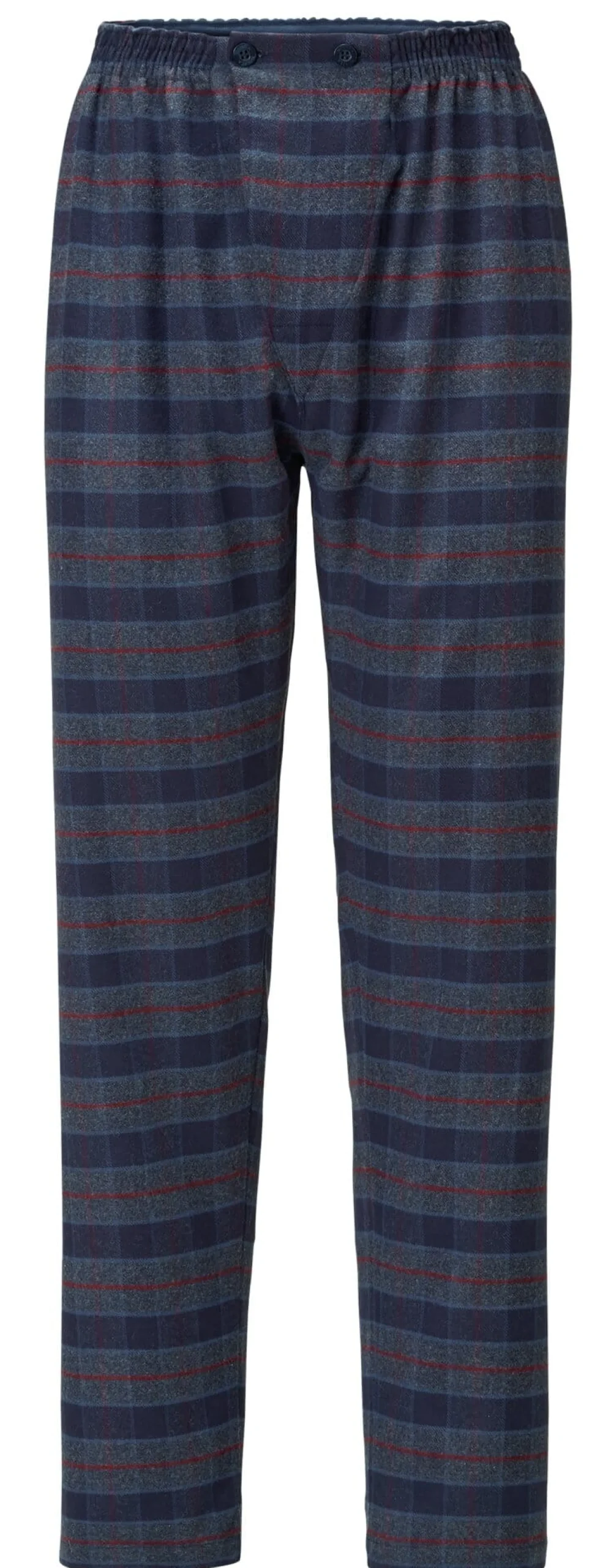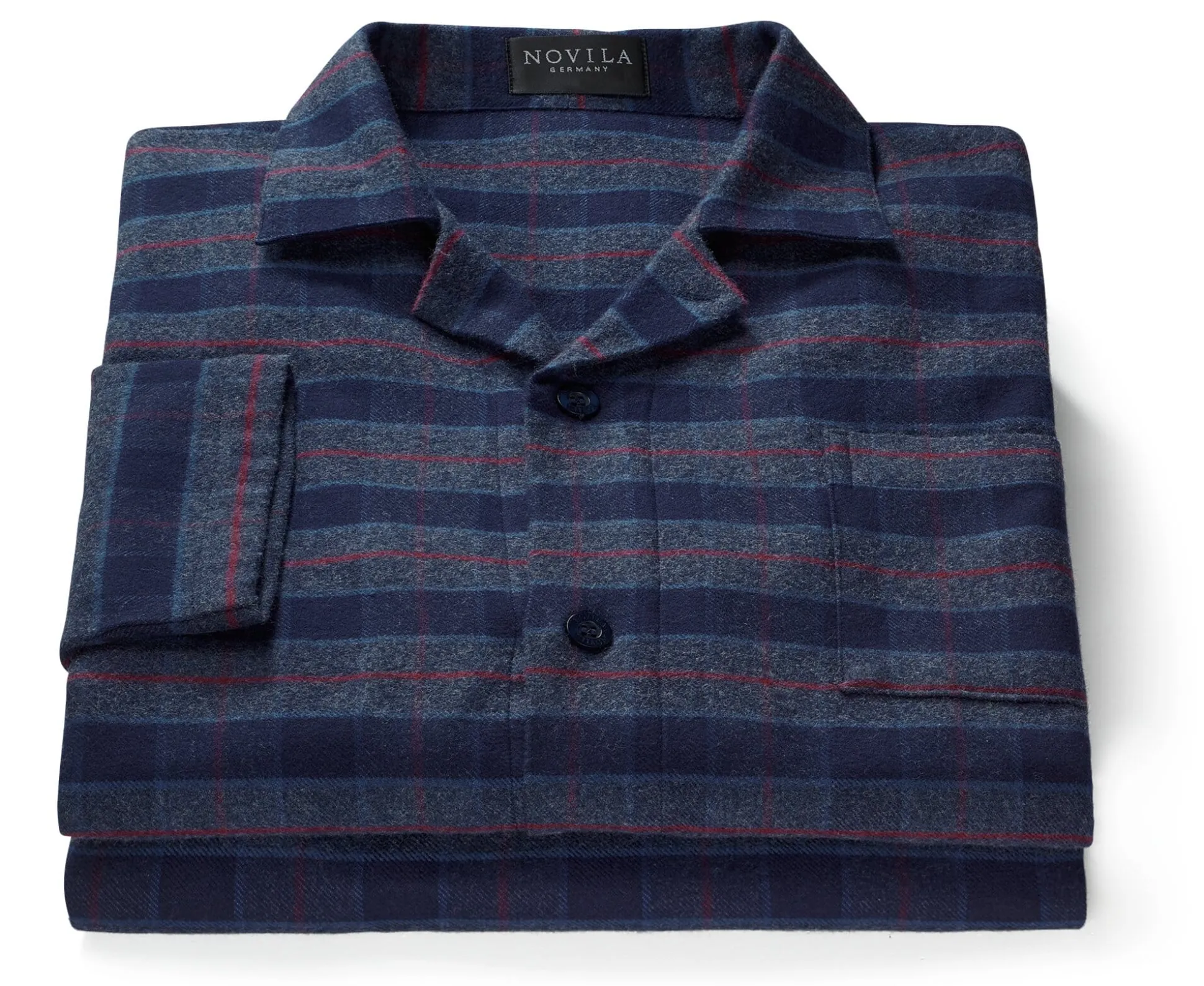 Klassischer Pyjama aus weichem, wärmendem Flanell. Das angeraute Gewebe zeigt ein markantes Karomuster. Die Jacke ist mit einer mustergetreu aufgesetzten Brusttasche ausgestattet, die Hose ist mit Eingriff und dem patentierten Novila-Softbund® gearbeitet.