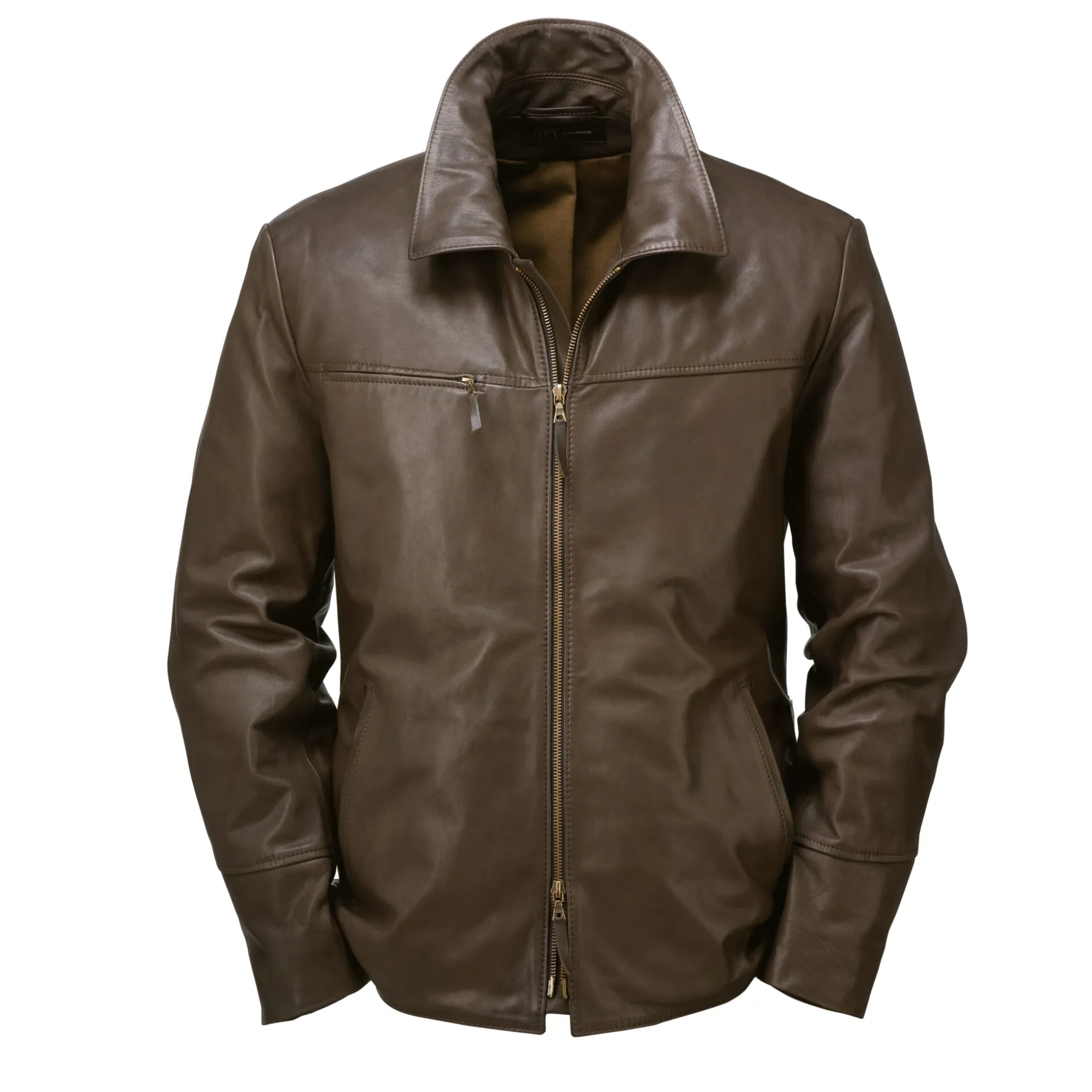 Bis über das Gesäß reicht diese von der Motorradbekleidung der 1960er Jahre beeinflusste Jacke. Das Leder kommt aus Italien, wo es chromfrei gegerbt wird. Die Spuren eines Tierlebens (Dornenrisse, Stiche) werden durch die Fassfärbung bewusst nicht zugespritzt und abgedeckt. Seitlich unterhalb der Rückenpasse aufspringende Falten erweitern den Spielraum der Schultern in der Vorwärtsbewegung, was auch im Leben ohne Motorrad von Vorteil ist. Per Gurt im Rücken lässt sich die Taillenweite regulieren. Zwei große Paspeltaschen sind im unteren Vorderteil eingearbeitet. Eine in die Teilungsnaht der Schulterpasse eingearbeitete rechte Brusttasche ist mit Reißverschluss zu schließen. Eine unter dem Zweiwegereißverschluss liegende Blende bietet Windschutz. Ein stabiler Baumwollköper dient als Rumpffutter, im Ärmel erleichtert ein kräftiger Viskoseserge das Anziehen.