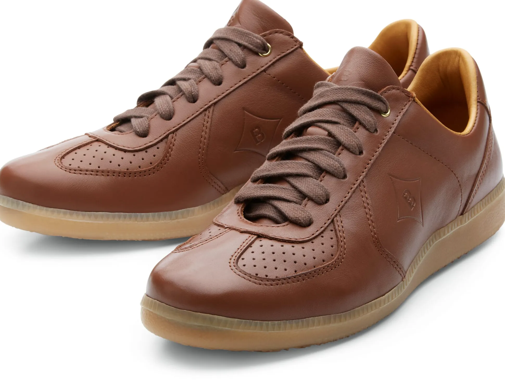 Was Sportler*innen recht ist, ist Trainer*innen billig. So entstand in den 1970er Jahren der Brütting Trainer, ein Schuh der zuvorderst für den Hallensport konzipiert war. Brütting hat diesen Klassiker aus eigenem Hause aufgegriffen, behutsam modernisiert und neu aufgelegt. Sein Obermaterial ist ein weiches Rindleder. Es ist am Vorderschuh perforiert, was für eine gute Fußbelüftung sorgt. Das Futter und die gepolsterte Decksohle sind ebenfalls aus Rindleder, das jedoch, da es direkt mit dem Fuß in Kontakt kommt, chromfrei gegerbt ist. Die Decksohle ist herausnehmbar und kann bei Bedarf durch eigene Einlagen ersetzt werden. Die Staublasche ist ebenfalls gepolstert, was den Tragekomfort erhöht. Die leicht profilierte Laufsohle aus Gummi gibt guten Grip. Sie ist bewusst in einem eher hellen Farbton ausgeführt, der einerseits gut zum Leder passt und andererseits keine Spuren auf dem Hallenboden hinterlässt.
