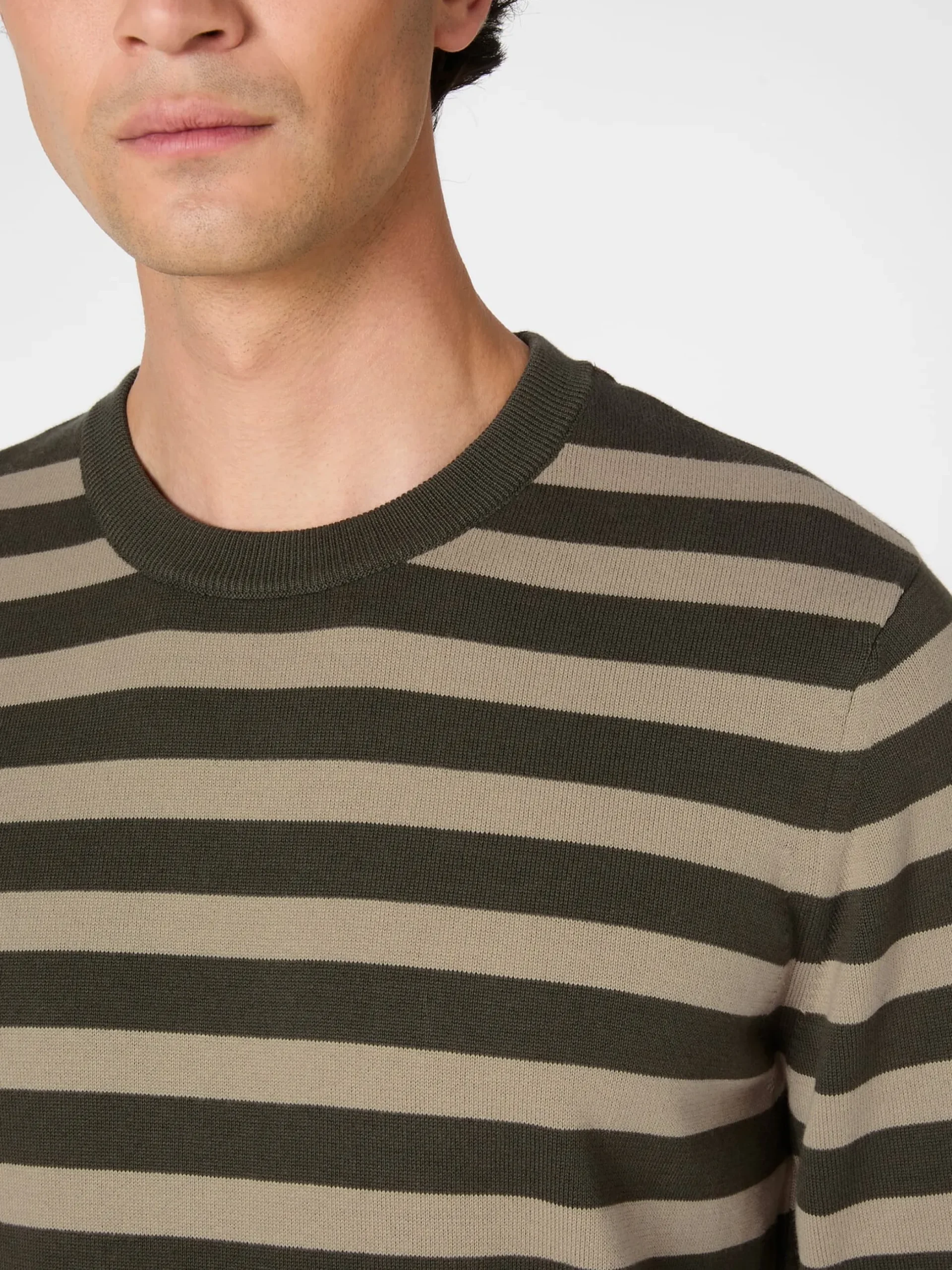 Bequem und lässig ist dieser glattgestrickte Pullover mit dem markanten Ringelmuster, der ein echtes Basisstück der Garderobe darstellt. Feine Rippenstrickbündchen bilden den Abschluss an Hals, Ärmeln und Rumpf. Die verwendete Baumwolle stammt aus kontrolliert biologischem Anbau.