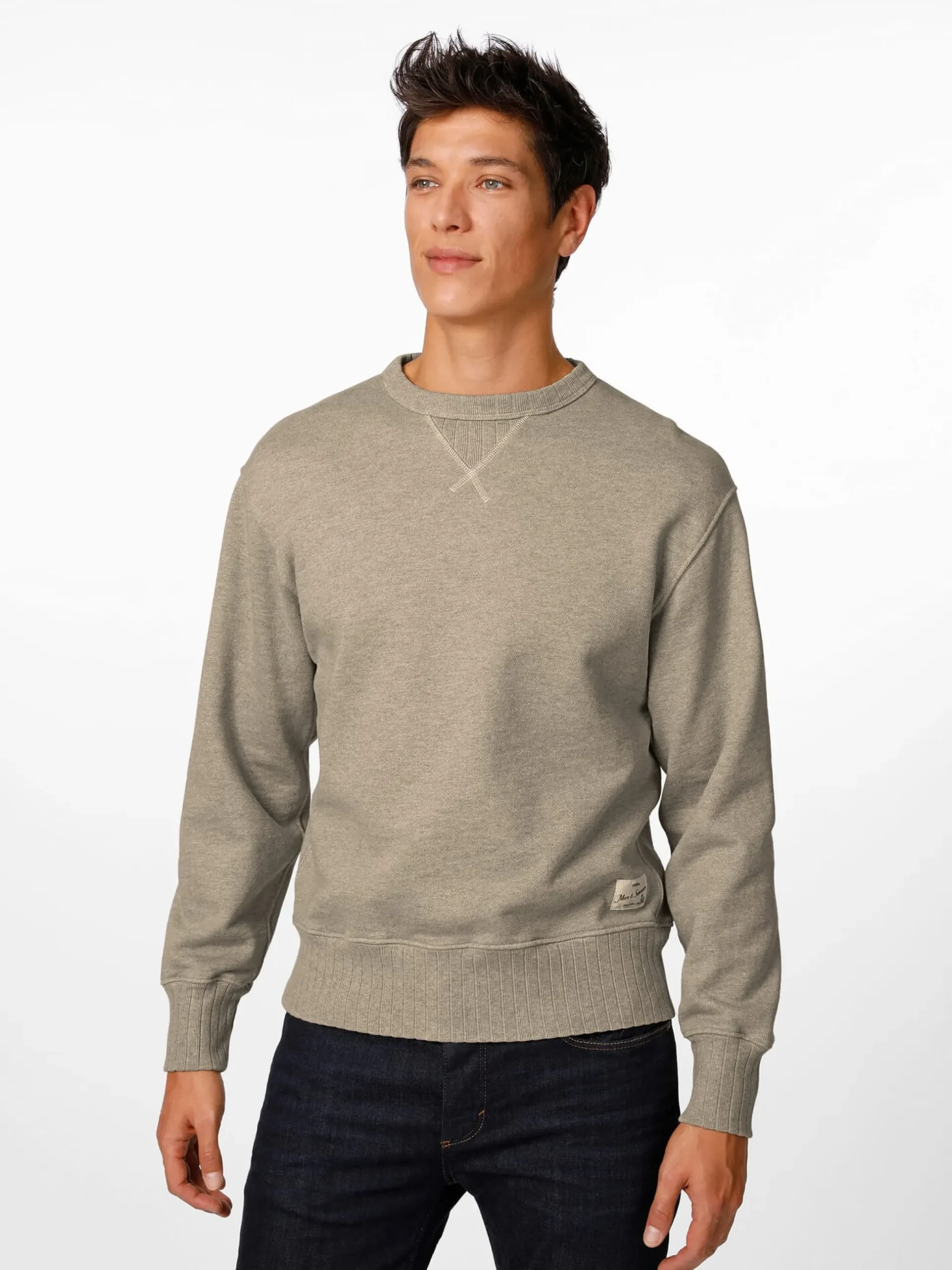 Das Sweatshirt hat den Schritt von seinem Ursprung aus dem Sport in den Alltag längst vollzogen. Dabei ist es nicht nur in der Freizeit, sondern auch als bequeme Kleidung bei der mobilen Arbeit zu Hause bestens geeignet. Dieses klassisch geschnittene Sweatshirt besteht aus einer schweren French-Terry-Ware, die passend zum kräftigen Griff einen markanten Melangeeffekt zeigt. Ins Auge fallen zudem das klassische „Sweatshirt-Dreieck“ am Rundhalsausschnitt und die in breitem Rippenstrick ausgeführten Bündchen an Ärmeln und Rumpf. Die verwendete Baumwolle stammt aus kontrolliert biologischem Anbau.