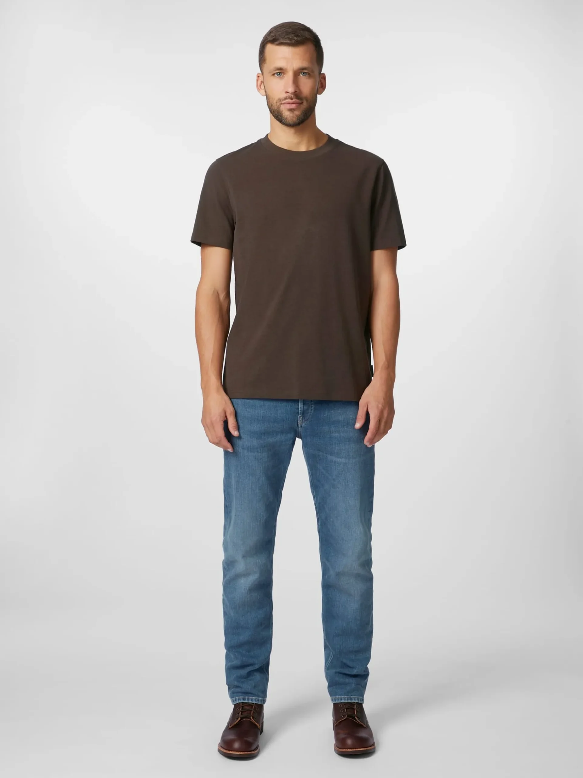 Das Gewirk dieses T-Shirts zeigt einen dezenten Melangeeffekt, der daher rührt, dass Armedangels zu seiner Herstellung je zur Hälfte kontrolliert angebaute und recycelte Baumwolle verwendet. Die Ware ist eher schwerer, weshalb das T-Shirt vor allem solo getragen und weniger zum Unterziehen genutzt wird.