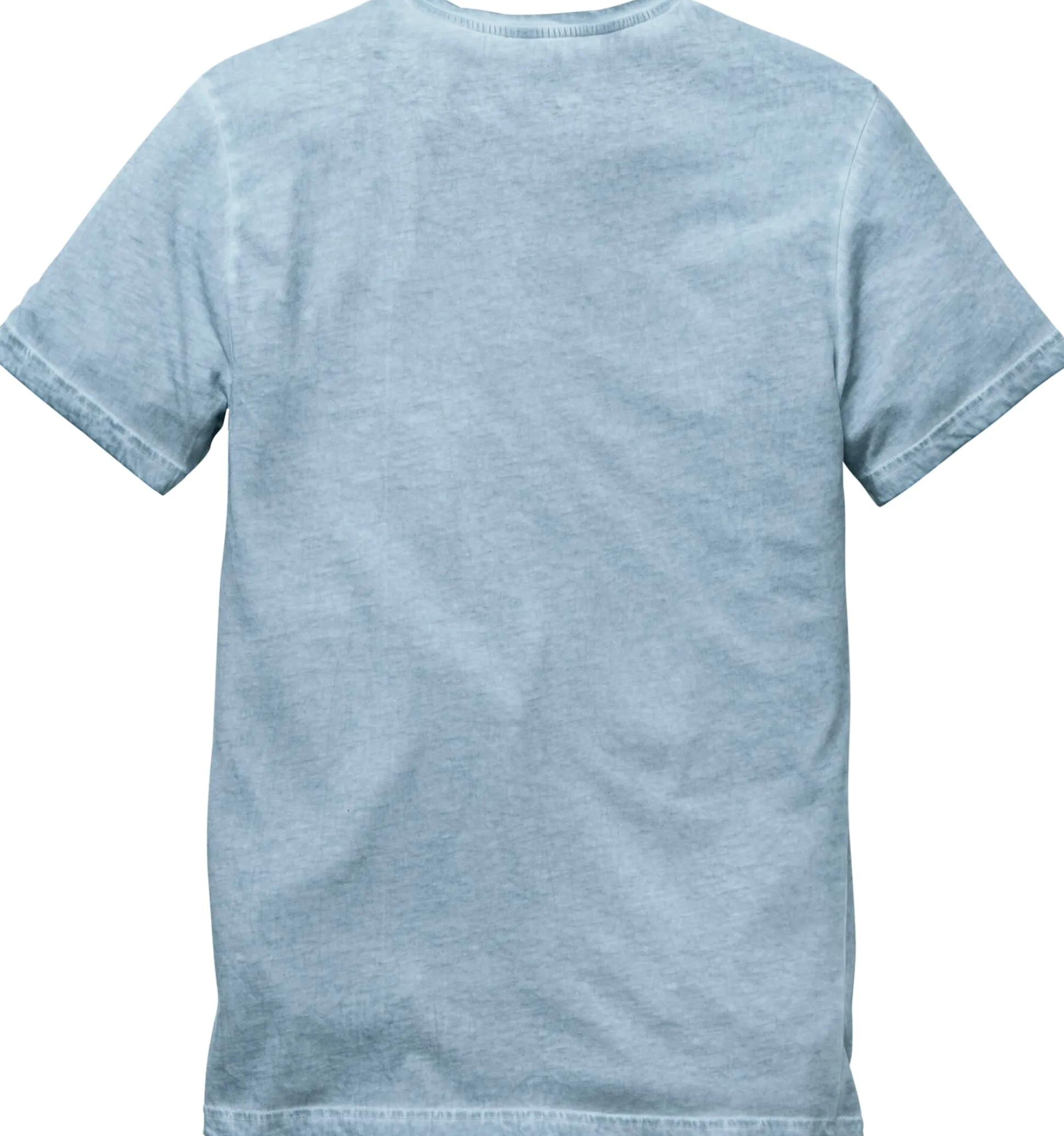 Klassisches Rundhals-T-Shirt aus kbA-Baumwoll-Jersey, dessen Maschenware einen ausgewaschenen Effekt zeigt.